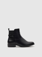 Our flat ankle boot with elastic and buckle is the perfect shoe for any occasion! Crafted with high quality leather-like polyurethane, these flats feature an elastic buckle design for a sleek and stylish look. The material used on the sole is rubber, which ensures maximum comfort and durability. This timeless piece is a must have for your wardrobe!