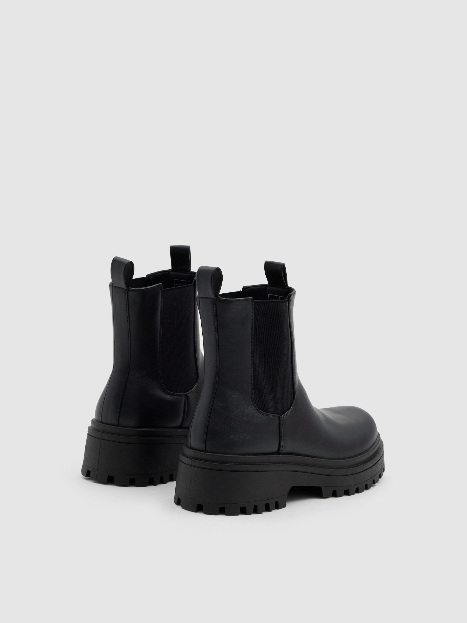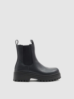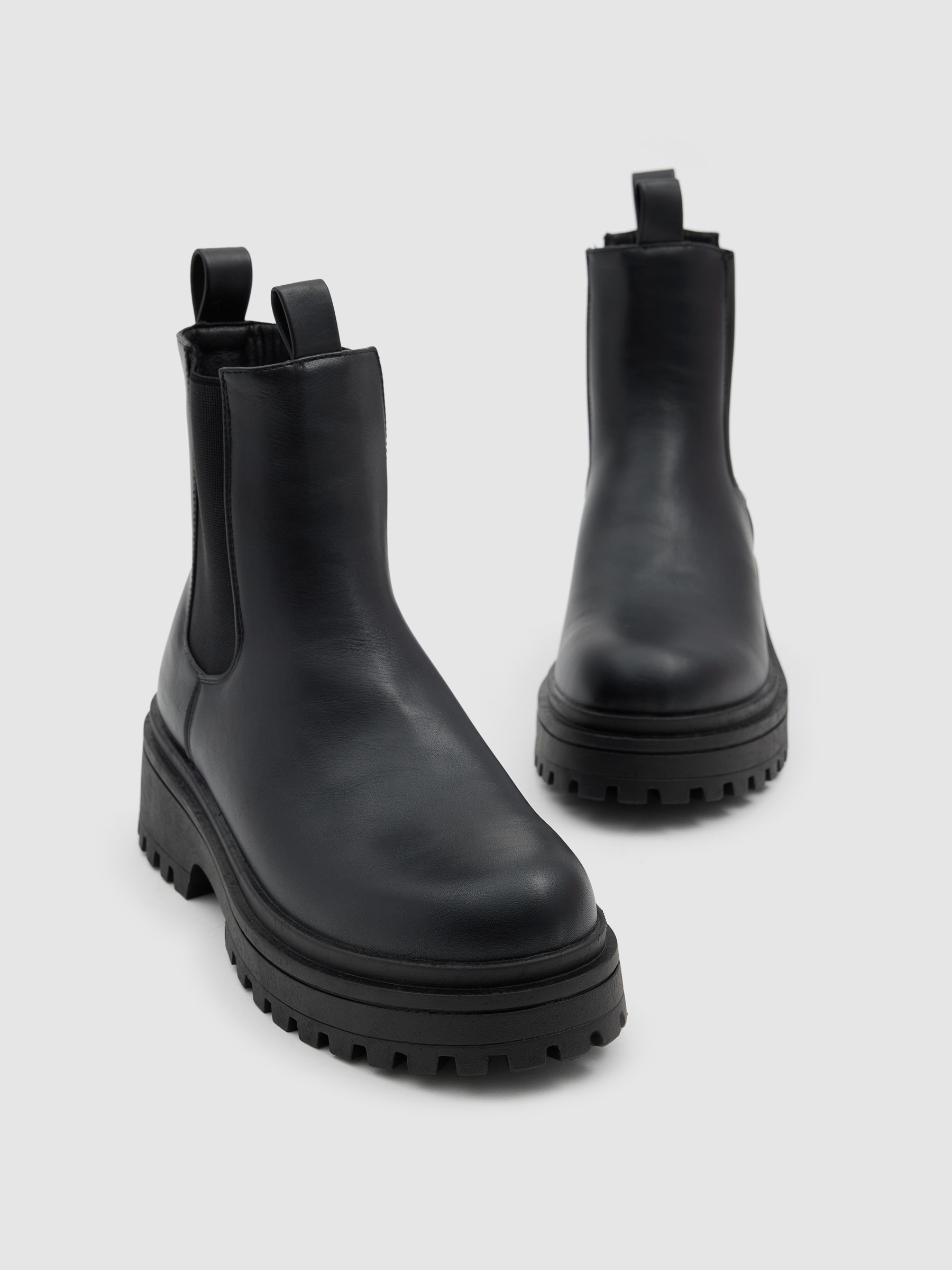 Chelsea platform ankle boots. Made of imitation leather with rubber track sole. Basic design with elastic sash on the shaft of the boot and round toe. Perfect to give a trendy touch to any outfit.