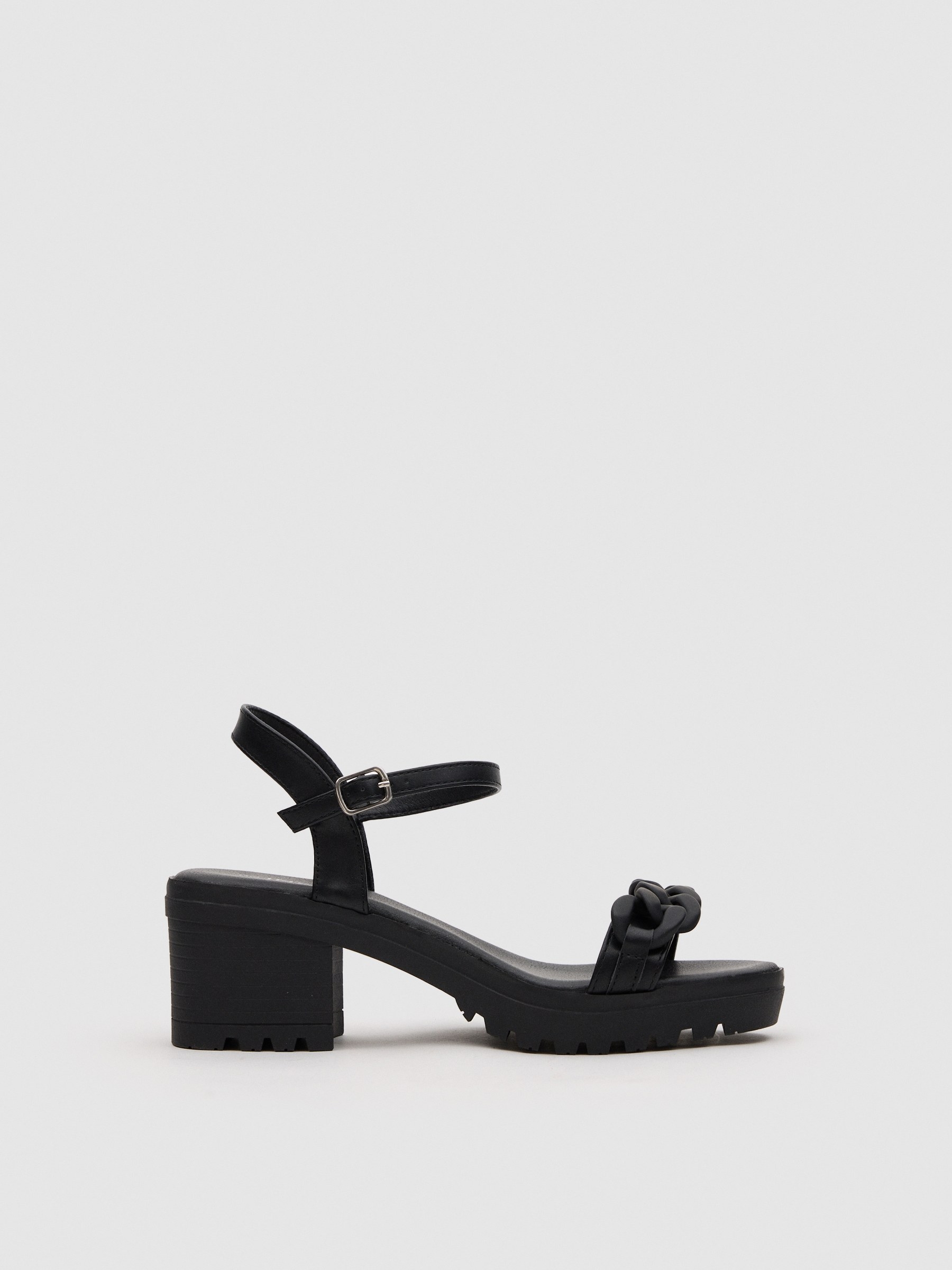 Take a bold step with these heeled sandals in patent leather fabric. Front strap with matching decorative chain. Rubber track sole with a centimetre platform at the front and a medium wide heel. Ankle strap fastening. The perfect shoe for those looking for a youthful and daring look.