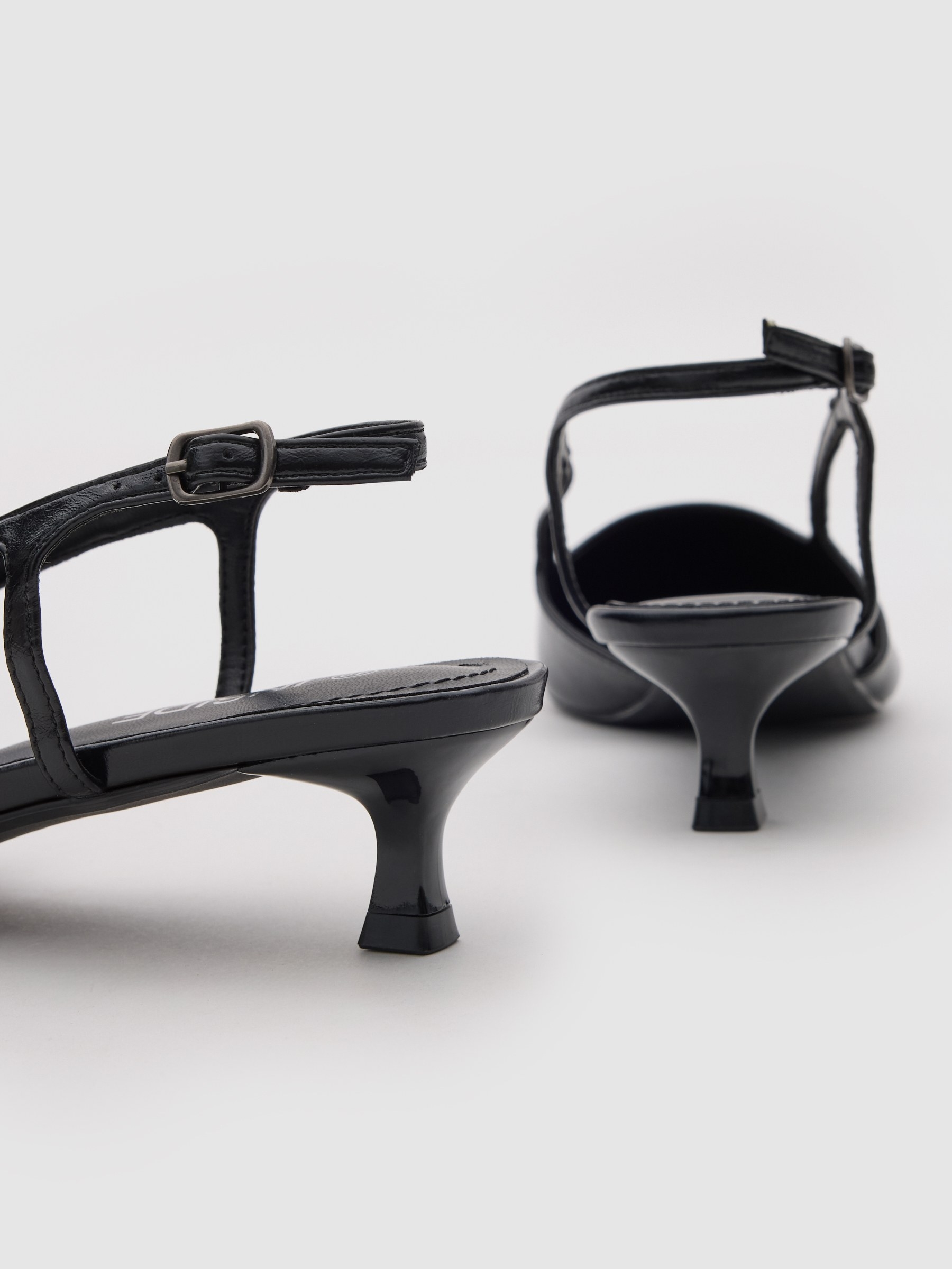 Low-heeled sandal with strap design and leather-effect finish. Rubber sole. Heel of 6.50 cm and platform of 2.50 cm.