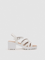 Take a daring twist with these heeled track sandals. Cross-strap design in faux leather fabric. Toothed rubber sole with medium wide heel and platform at the front. Ankle strap fastening. Perfect for those with a confident stride who are looking to stand out.