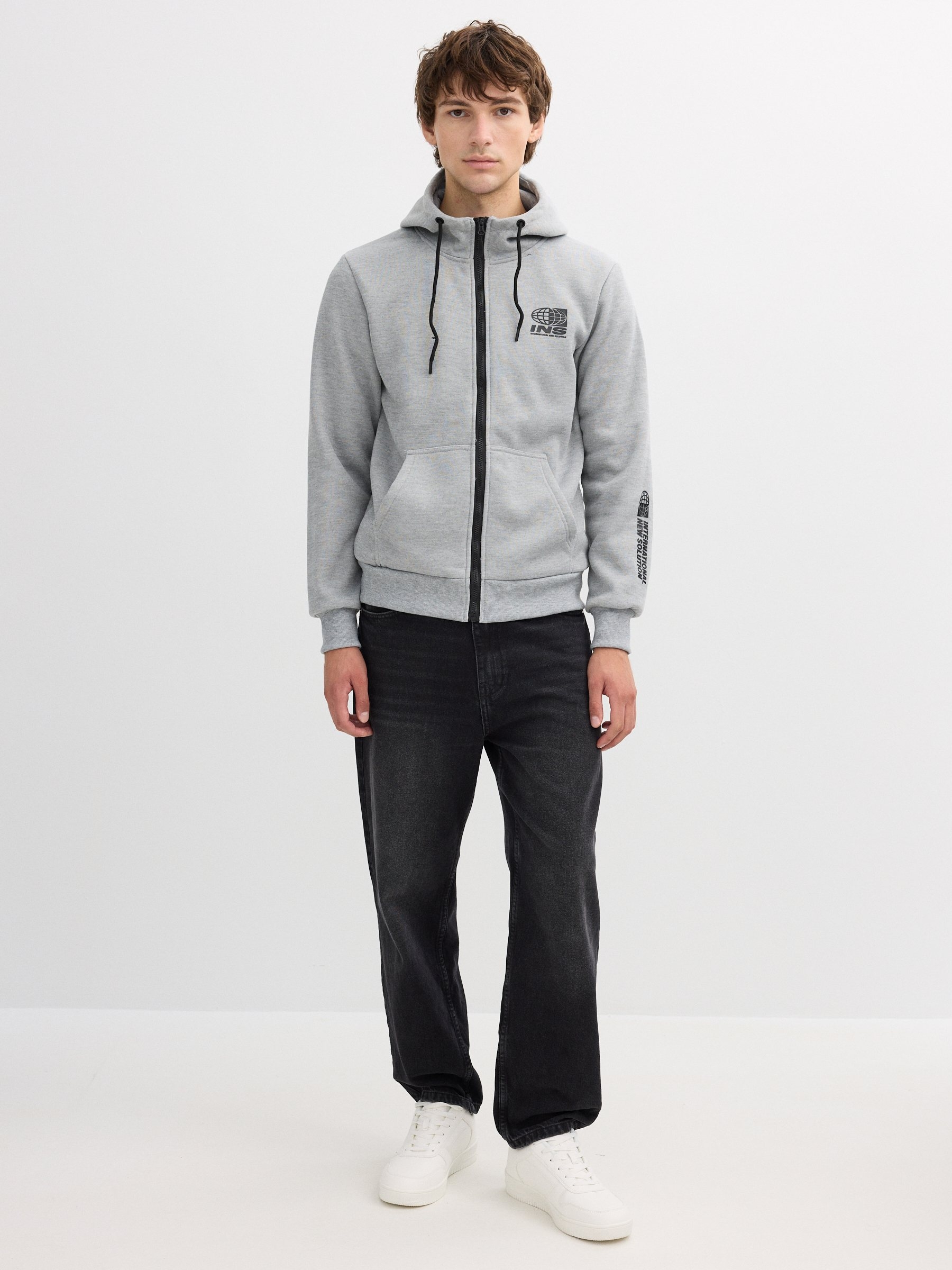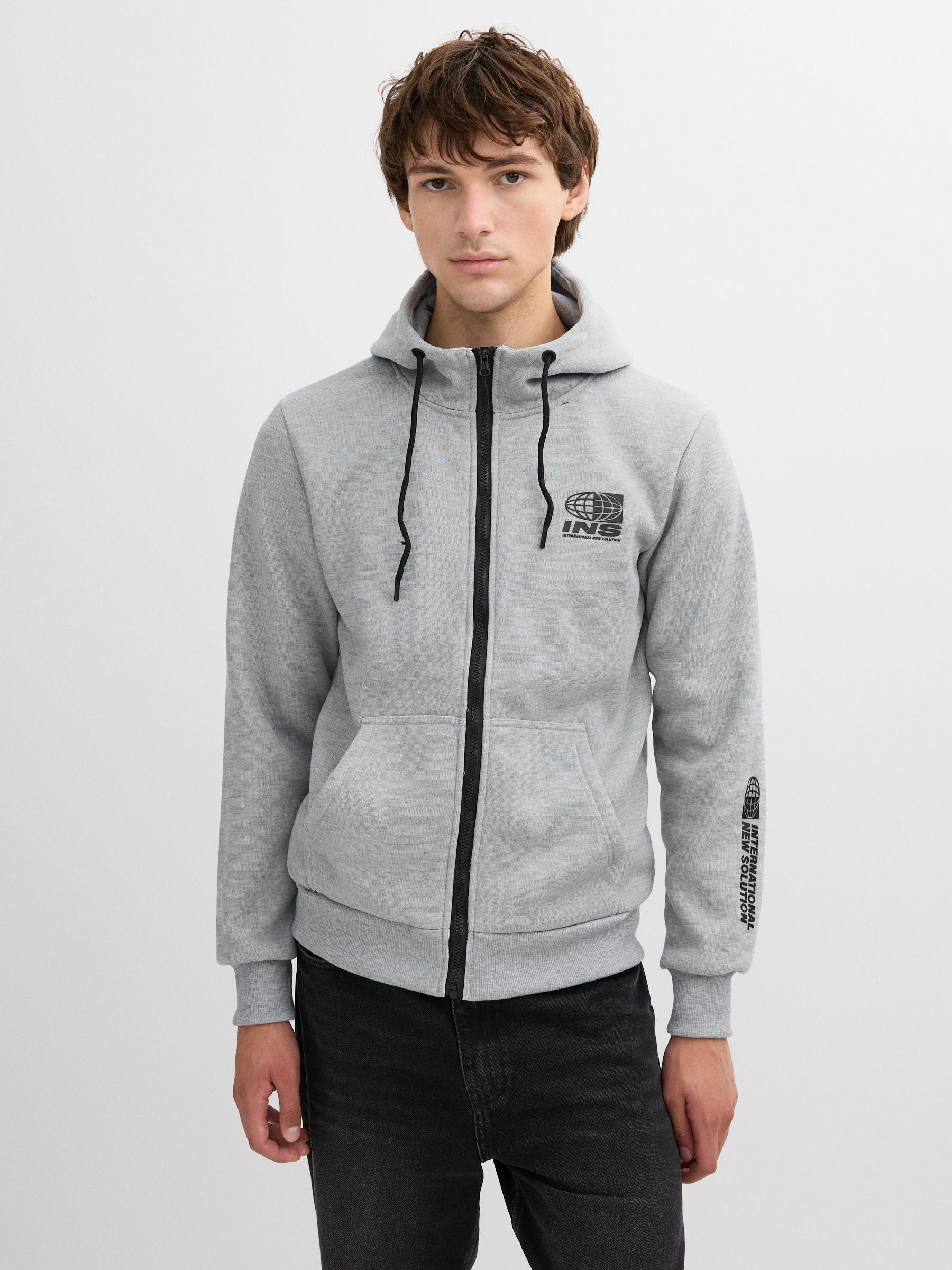 Long-sleeve sweatshirt with adjustable hood using drawstrings. Fleece fabric and sporty style. With front kangaroo pockets. Elasticated cuffs and waistband. Front zip closure.