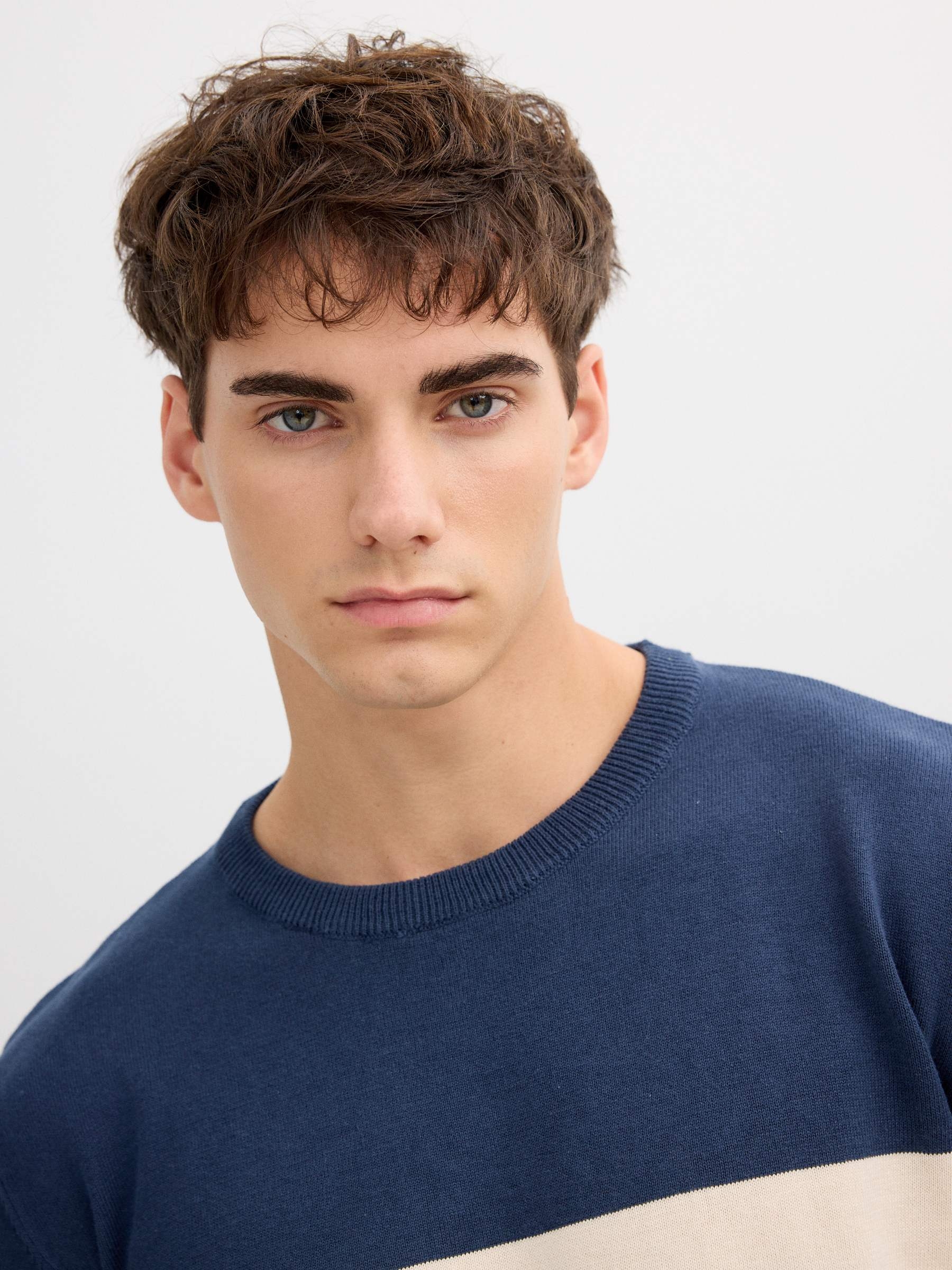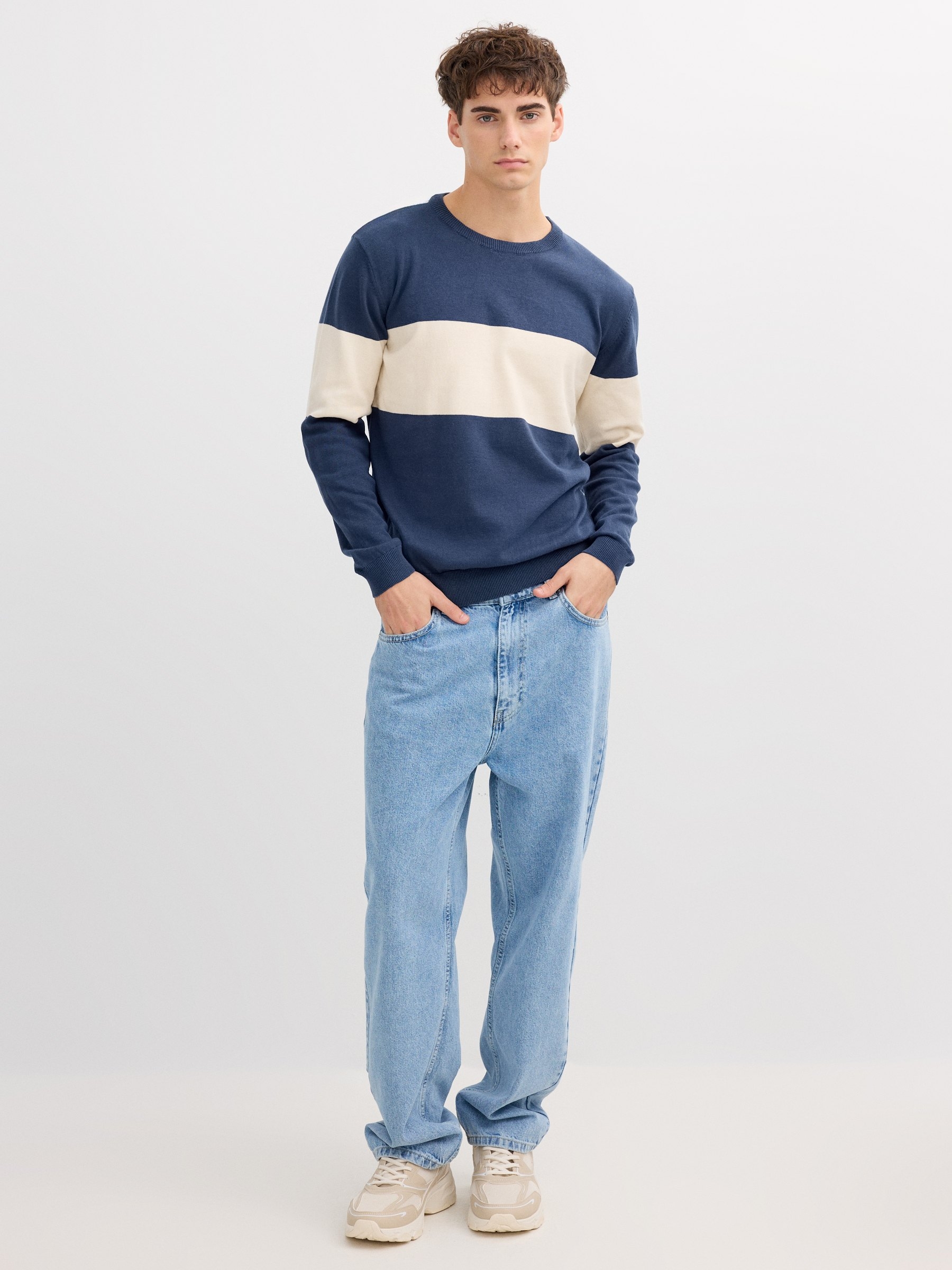 Knit sweater with color block design with a round neck and a width of 51 cm. Perfect to combine with your favorite garments.