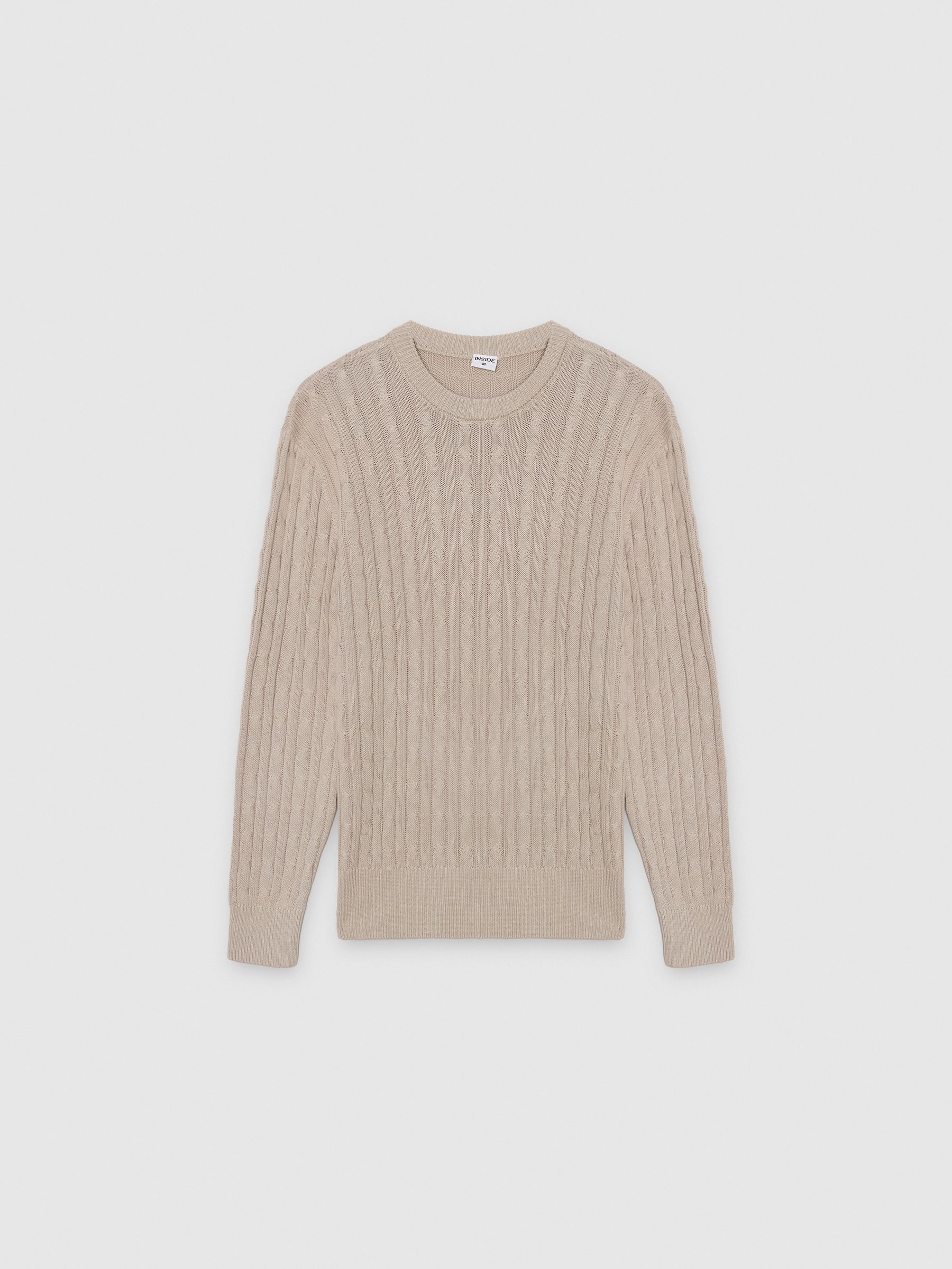 Cable knit sweater with a plain print in knit fabric. Perfect for any occasion.