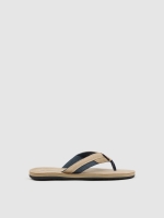 Canvas strap flip-flops combined in two tones, providing a relaxed and versatile style. Toe design with decorative stitching and side label. Padded insole for greater comfort and flexible rubber sole for better grip. Ideal for warm days and casual looks.