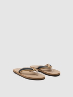 Take a bold step in these combination toe sandals. V-neck design with straps made from polyamide fabric. Striped label detail. Flat rubber sole. Ideal for the young and adventurous.