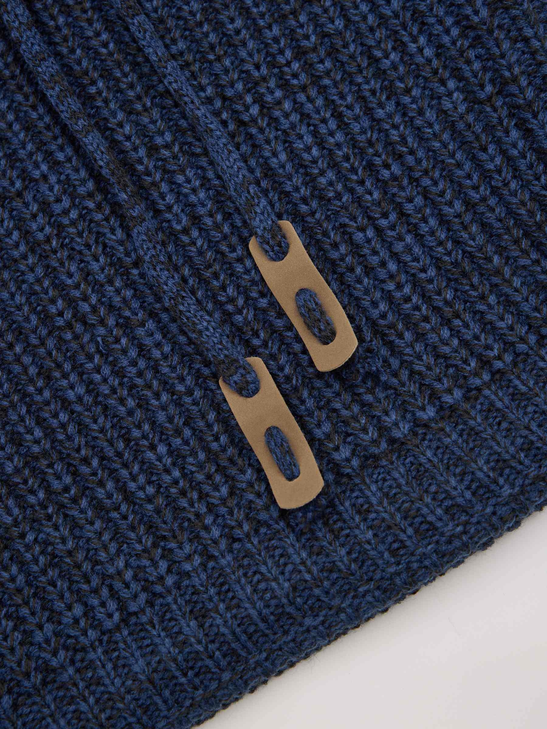 Men's tubular scarf in navy blue with adjustable drawstring.