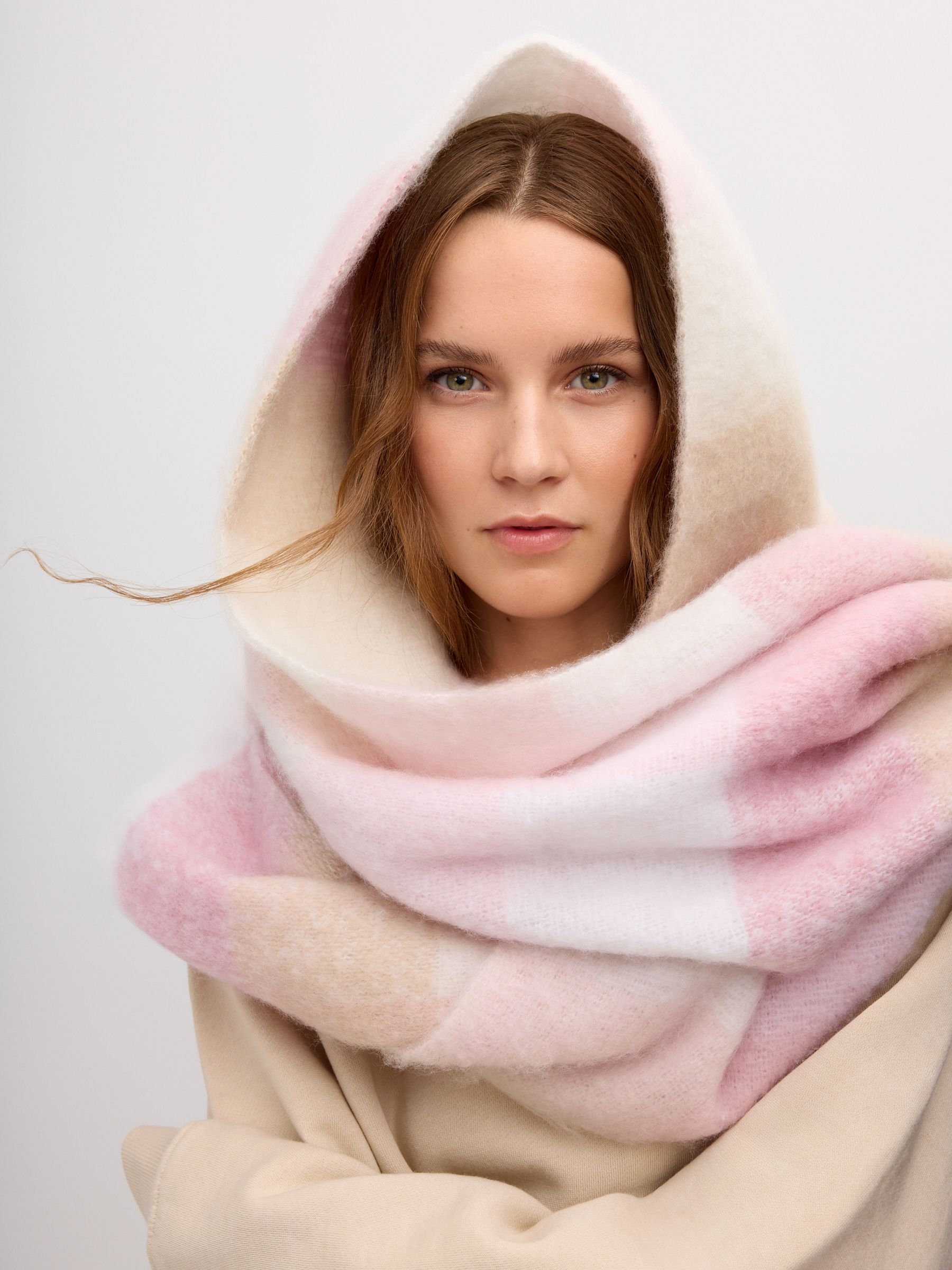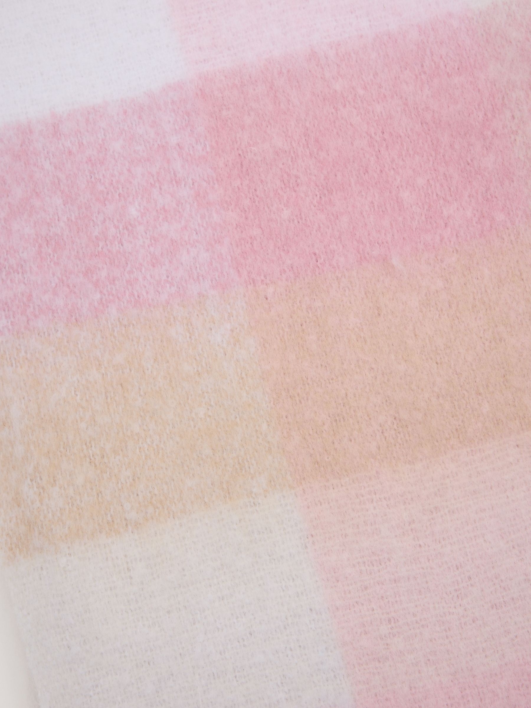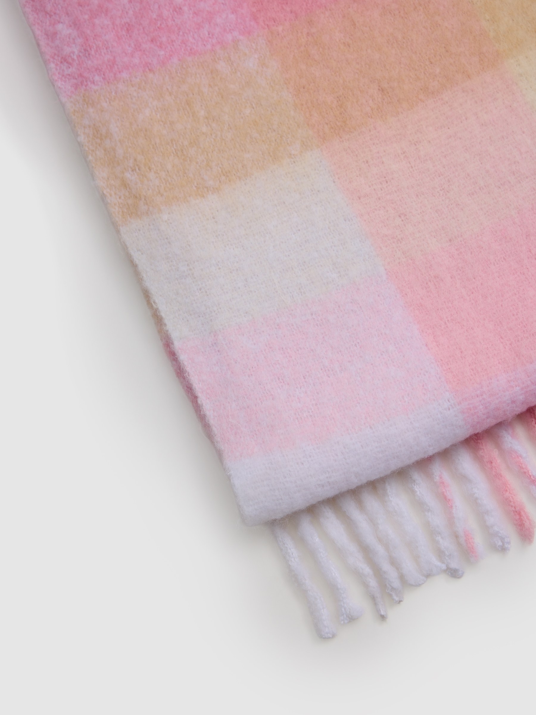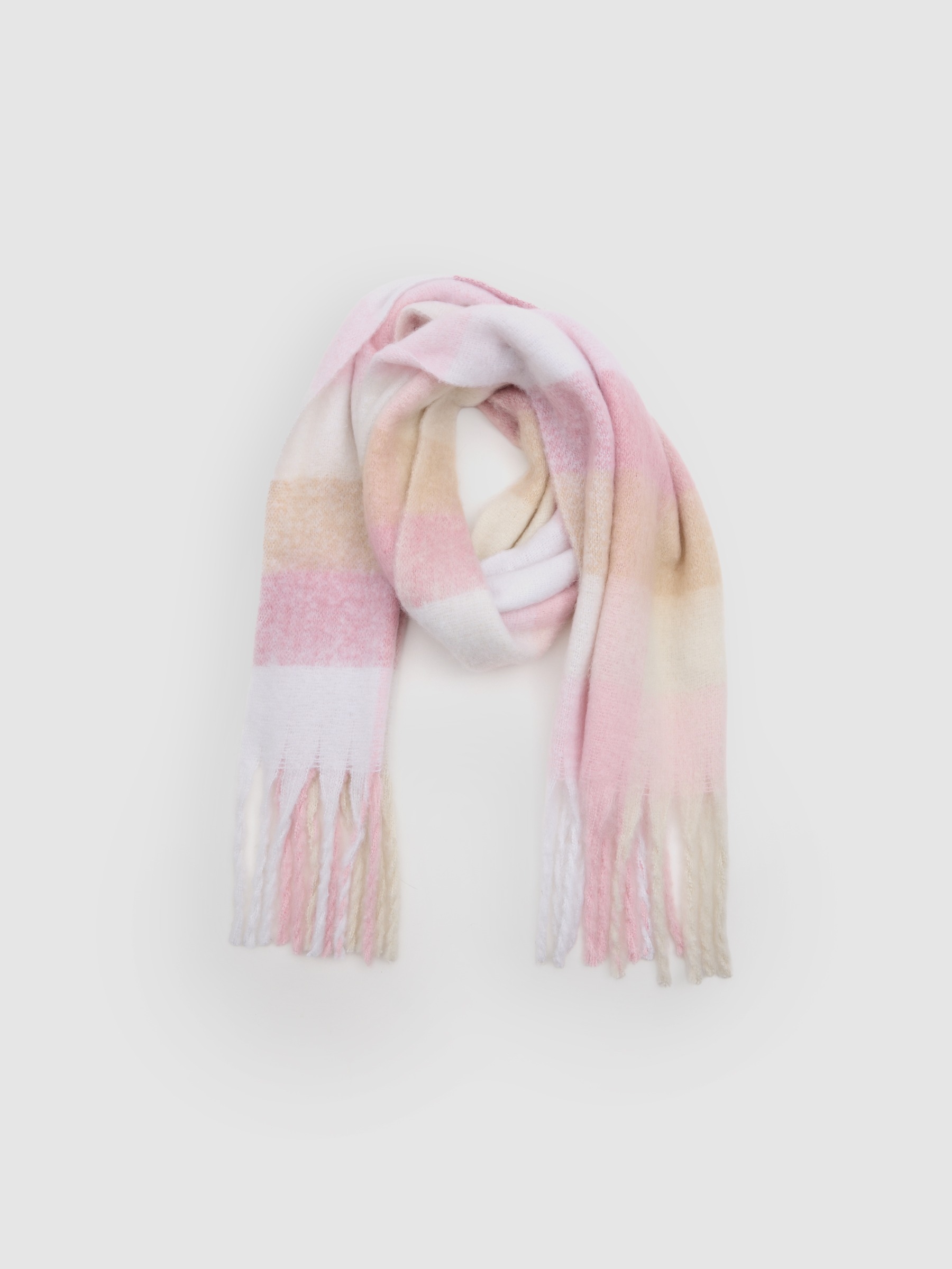 Checkered patterned scarf in pastel tones and finished with matching fringes. Measurements: 190 x 42 cm.