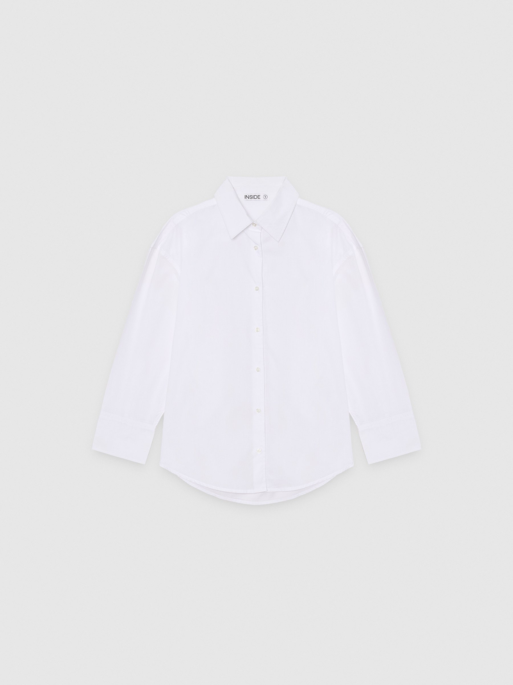 Oversized poplin shirt with a plain design. Classic button closure and long sleeves. Classic collar with a wide cut. Perfect for pairing with your most special garments.