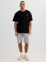 Basic jogger-style bermuda shorts with side pockets. Adjustable elastic waist with drawstrings.