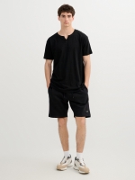 Bermuda sports jogger made of fleece fabric. Elastic waistband with drawstrings and regular fit.