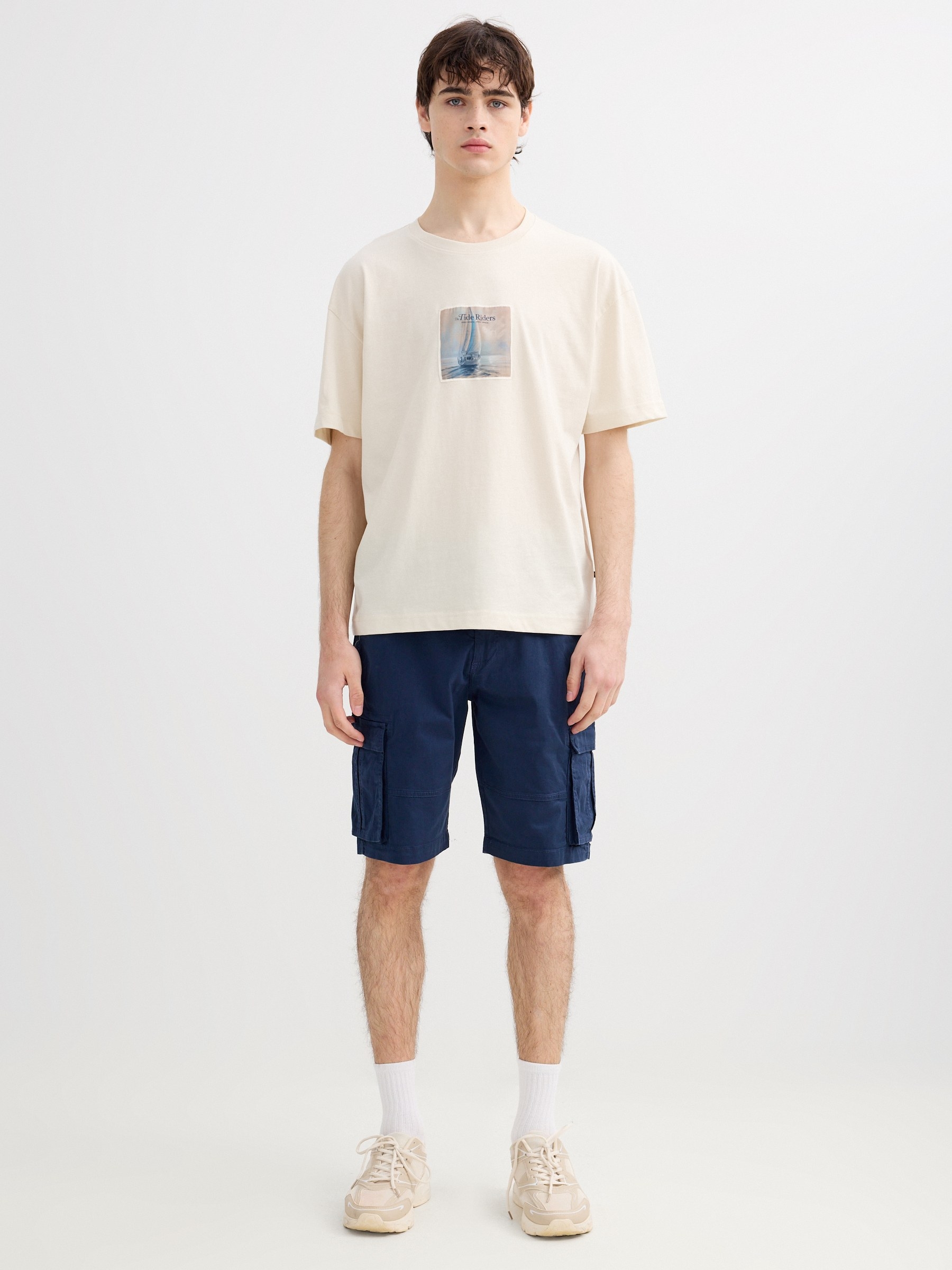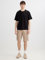 Bermuda cargo in gabardine fabric, with plain print and button closure. Side cargo-style pockets and straight cut.
