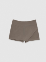 Asymmetrical skort in faux leather made from flat fabric. Zipper closure. Pair it with your favorite garments.