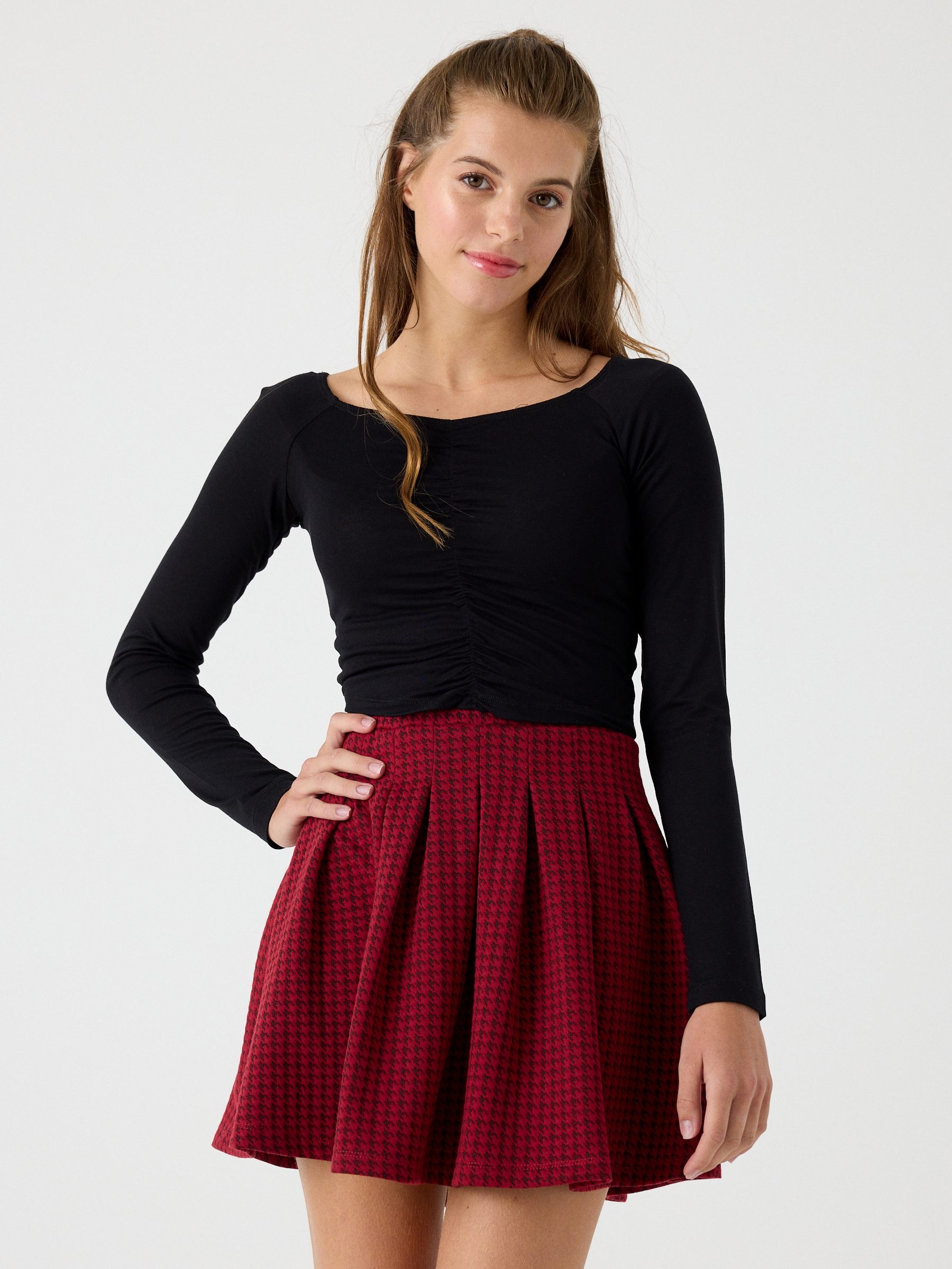 Trend alert! Rock your style with the star garment that you are going to have to puch in this season. Stop counting the days to release it, and get yourself this short flight skirt with houndstooth print and elastic waist. He will combine great with any basic.