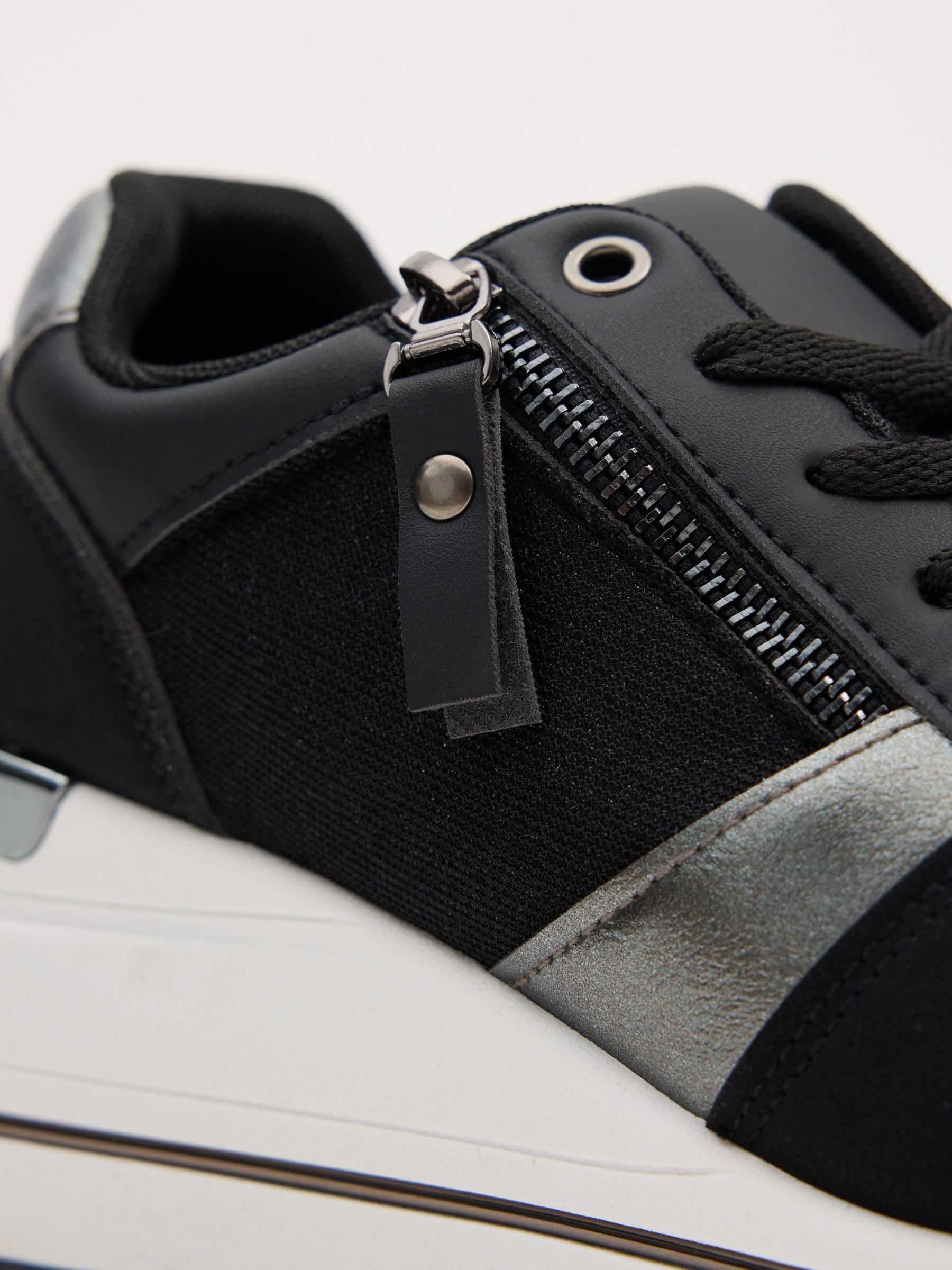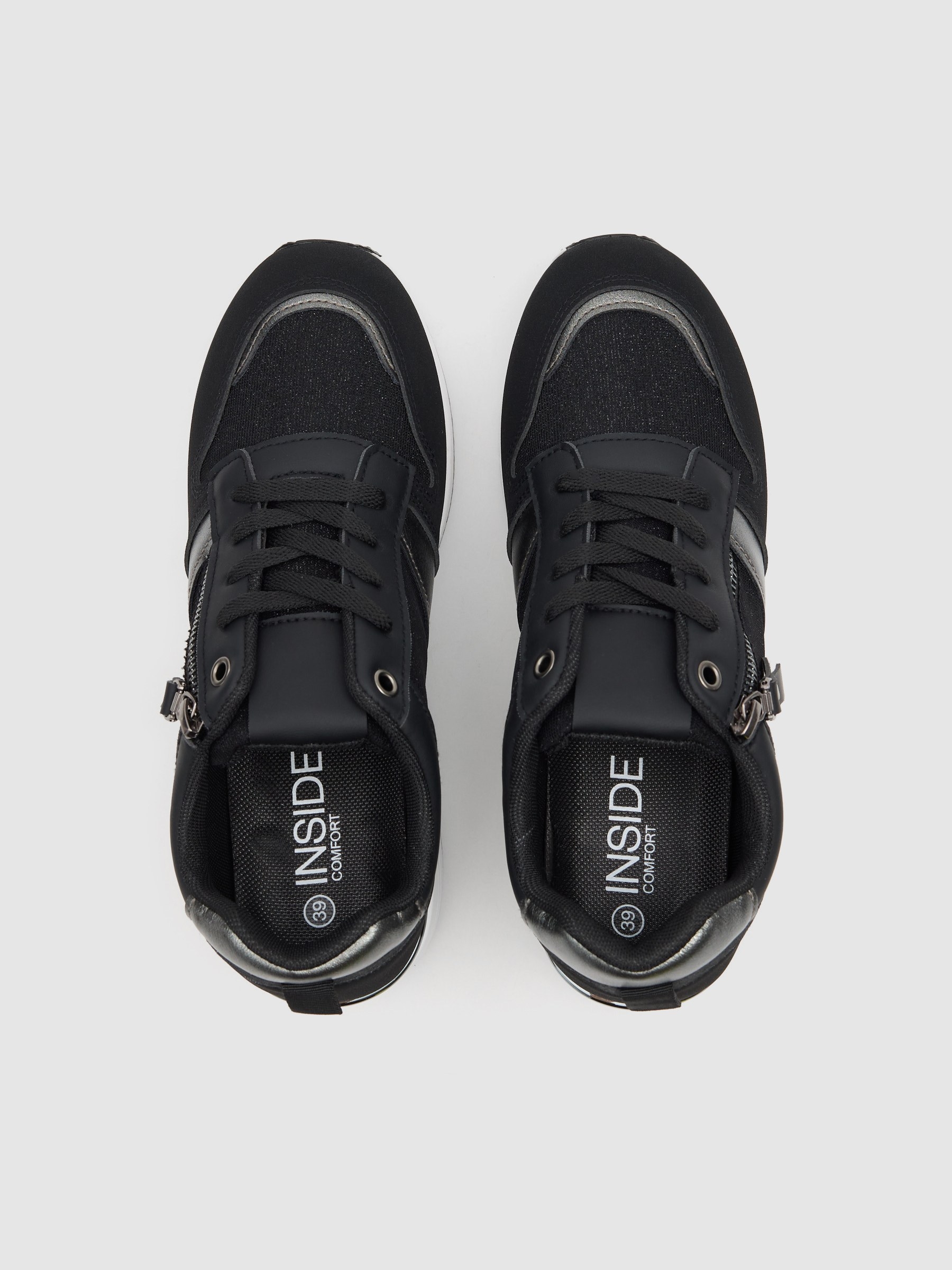 Casual wedge sneakers with zipper made of faux leather fabric. Rubber sole and 6 cm heel.