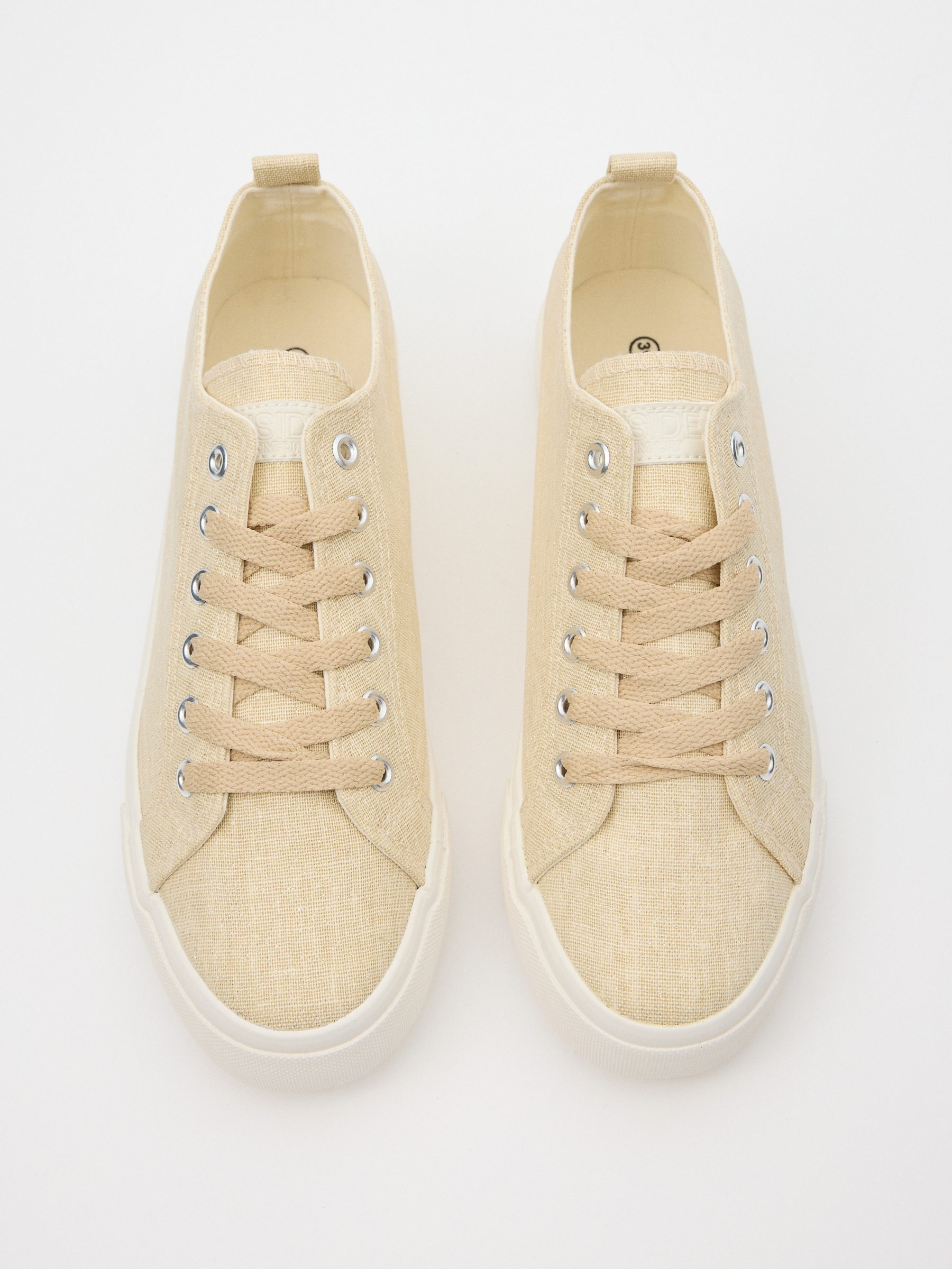 These classic canvas sneakers are the perfect choice for young people looking for effortless style. These basic sneakers are made of natural canvas, with a rubber sole and comfortable flat design. The lona fabric offers a lightweight and breathable feel, while the rubber sole provides great grip and lasting durability. The minimalist design and neutral color make these great for pairing with any casual outfits. Whether you're running errands or hanging out with friends, these shoes are sure to keep your feet comfortable and stylish.