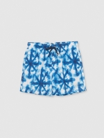 Printed swimsuit with blue-toned spots, 34 cm long, that combines style and comfort in equal parts.
