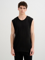 Sleeveless Single Jersey fabric T-shirt with a round neck. Width of 52.5 cm. Available in various colors.