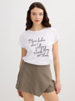 Cotton T-shirt with front text print. Short sleeve design and round neck. Boxy fit. Ideal to pair with denim.