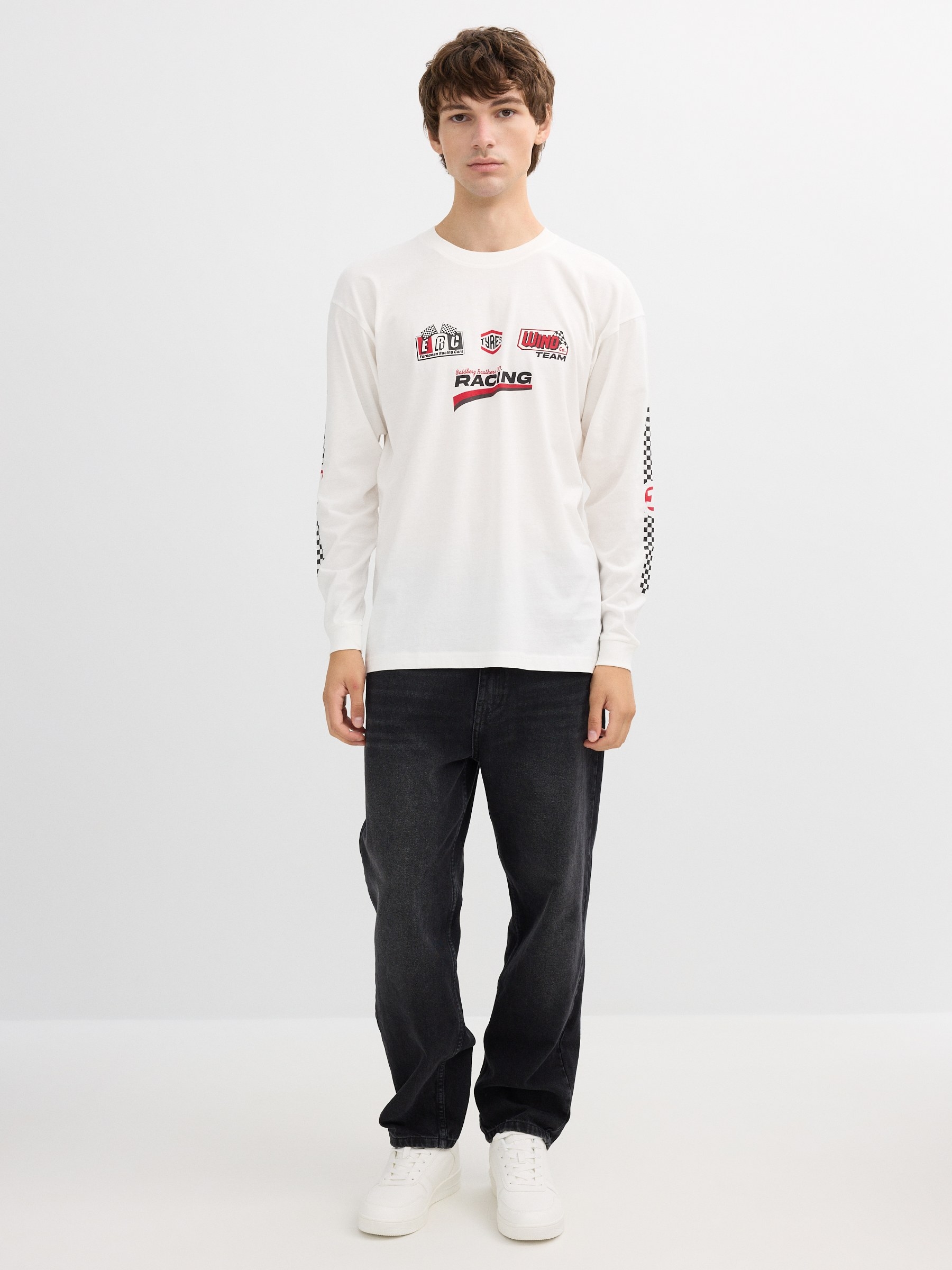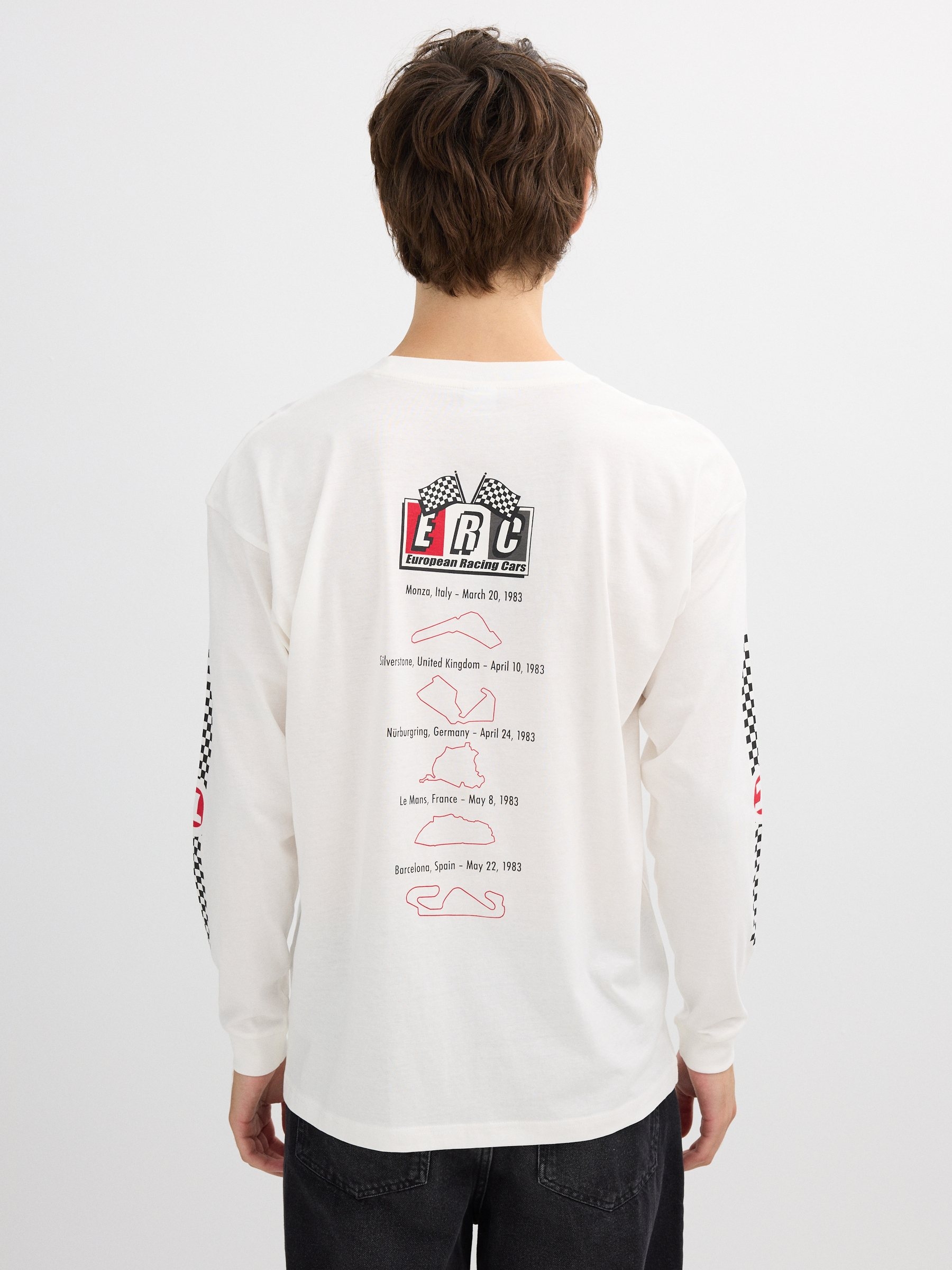 100% cotton long-sleeve T-shirt with a round neck. Front and back design combined with text. Oversized fit. Ribbed finishes.