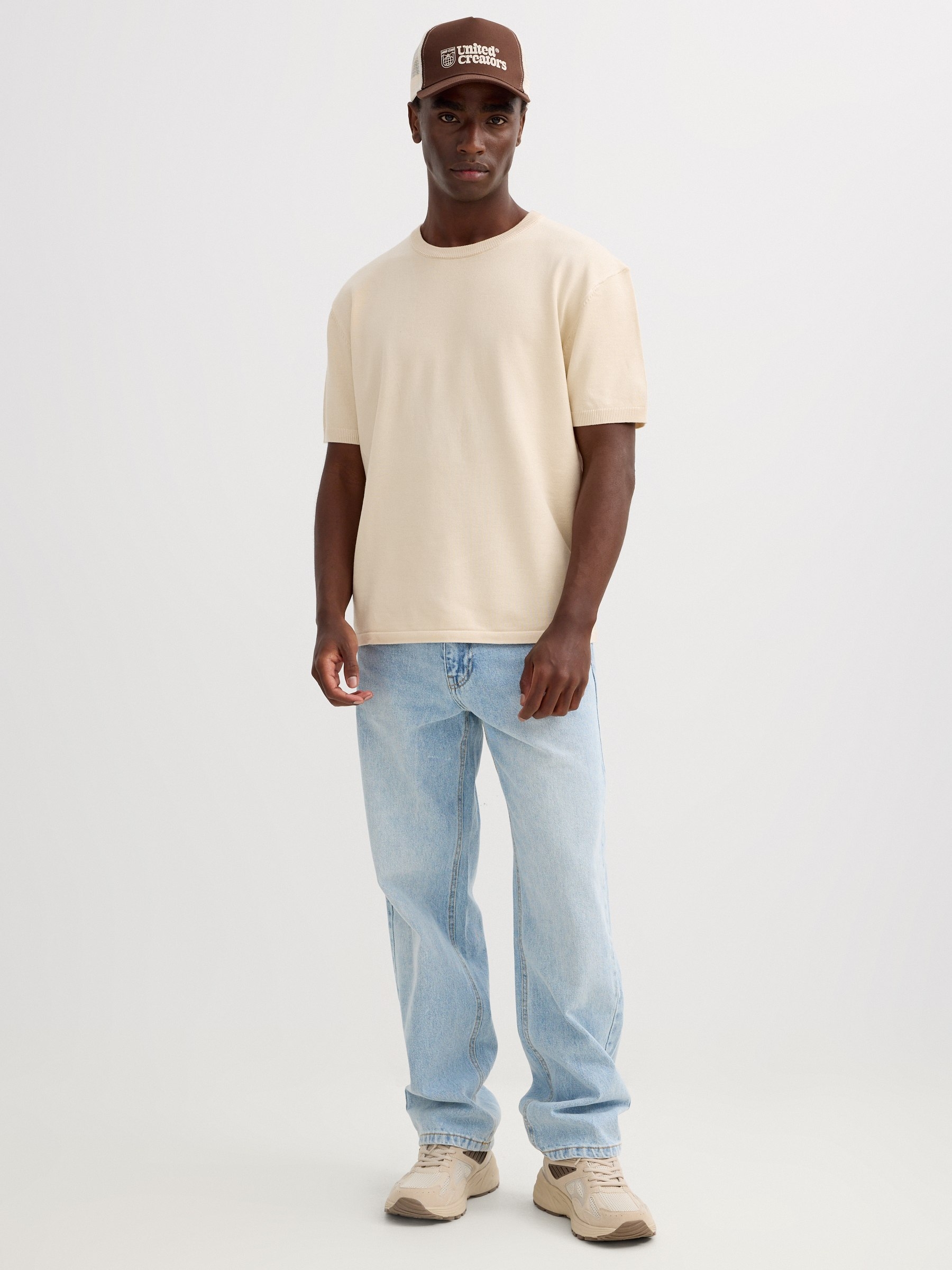 Plain knit T-shirt with short sleeves and round neck. Clean, minimalist finish, with a straight drape and 54 cm width.