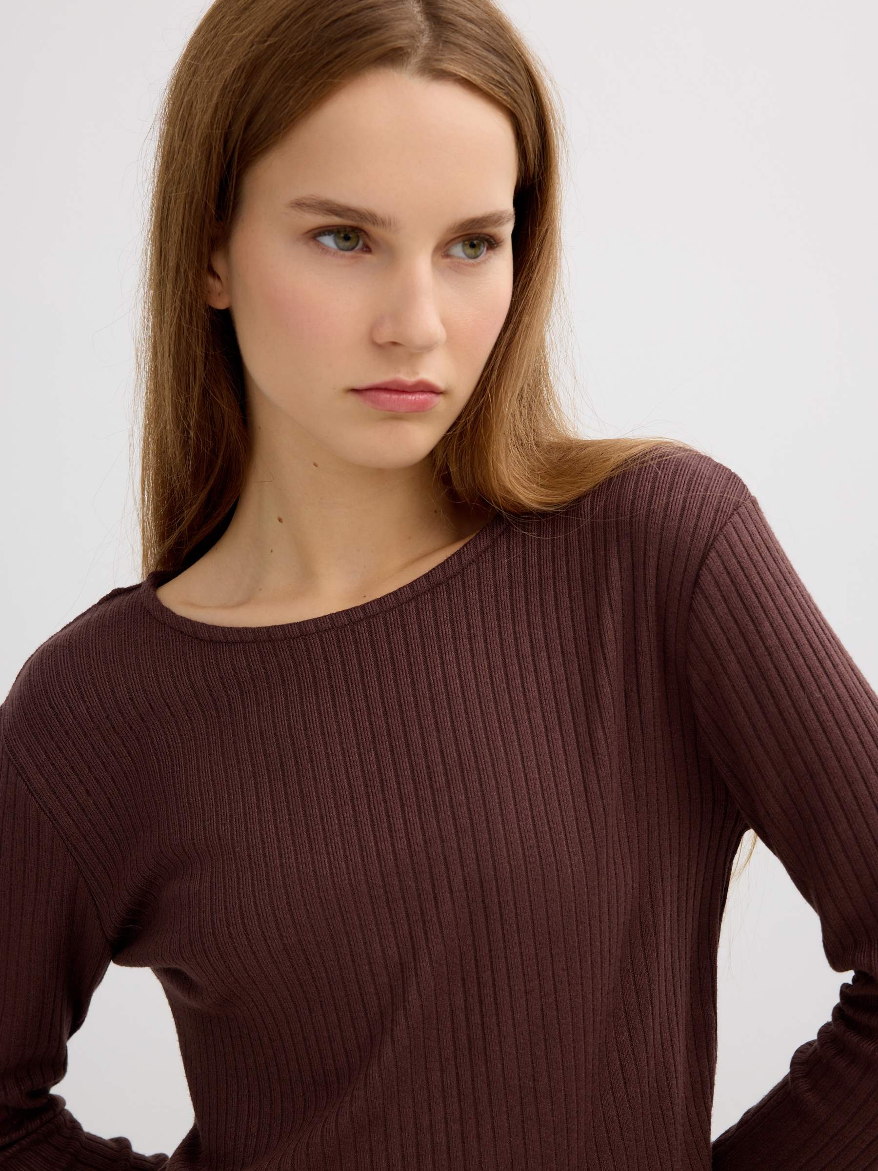 Long-sleeved shirt made from ribbed fabric. Slim fit.