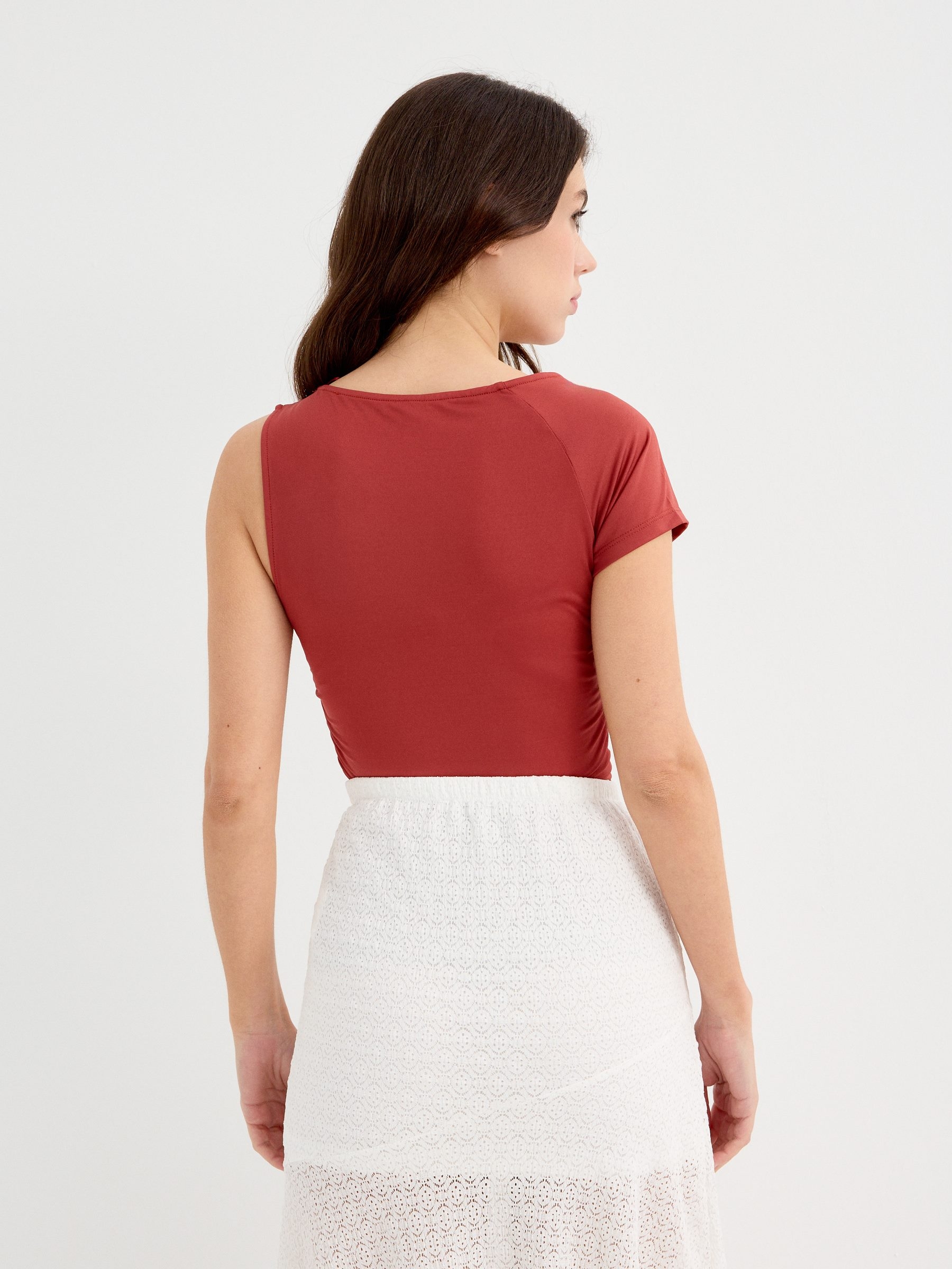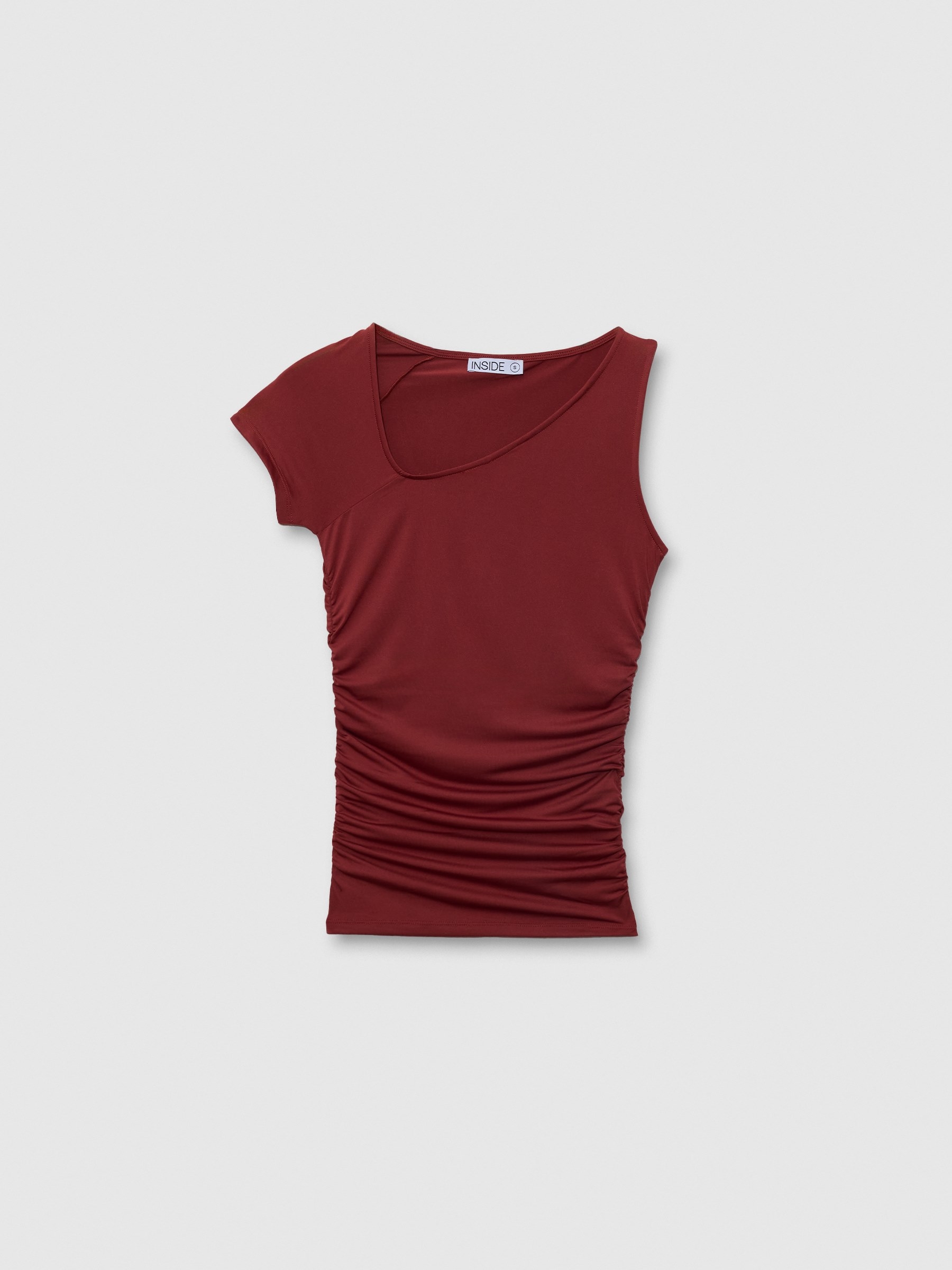 Ruched top with asymmetrical neckline-384.Ruched top with asymmetrical neckline-461.