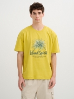 Short-sleeve T-shirt with text print on the chest, made of Single Jersey fabric. Round neck and width of 55 cm.