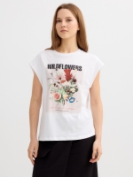 Basic sleeveless T-shirt made of cotton fabric, with a round neck and oversized square cut. Floral print on the front.