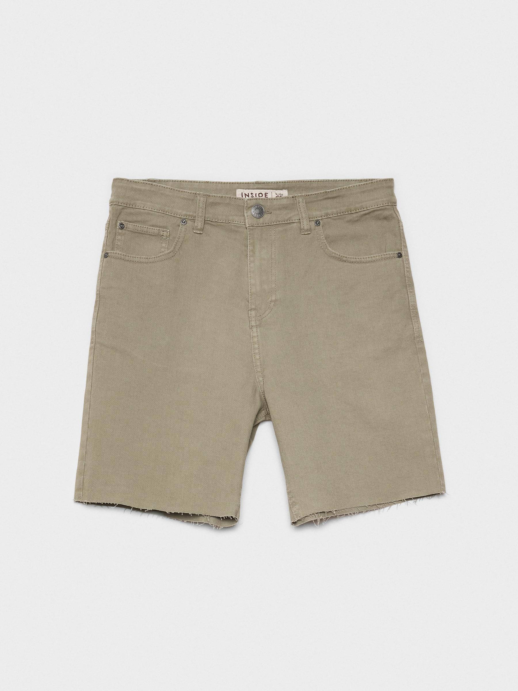 Completa tu look con esta bermuda denim cinco bolsillos con bajo sin rematar y cierre de botón y cremallera.