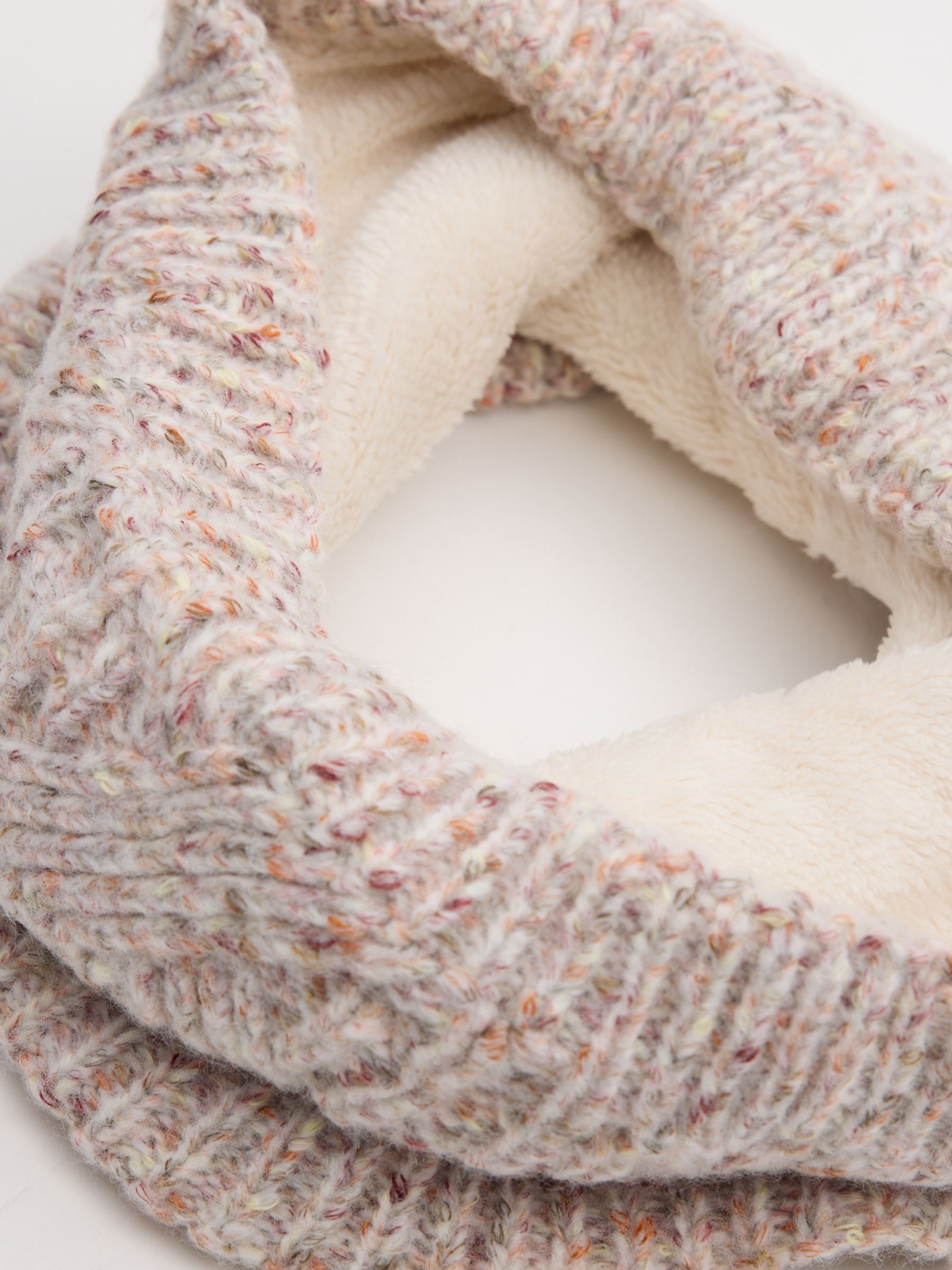 Bufanda cuello con lana de tejido jaspeado. Medidas: 25 x 42 cm
