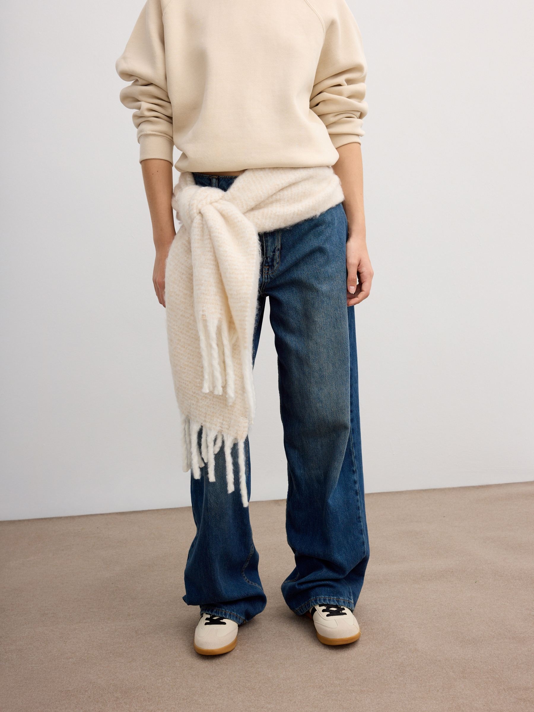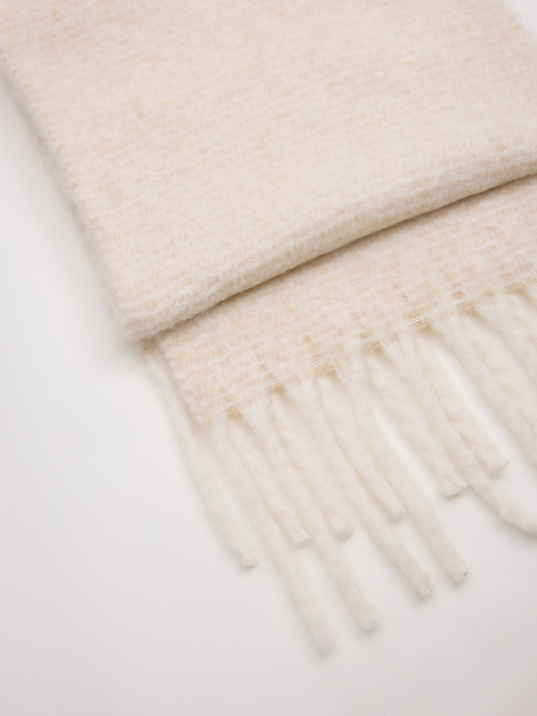 Bufanda de estampado liso y acabados con flecos a tono.