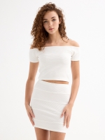 Camiseta de manga corta. Modelo corto de canalé con escote de barco. Disponible en varios colores.