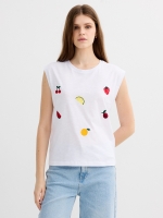 Camiseta sin mangas de tejido flamé con cuello redondo y corte regular. Estampado con motivos frutales bordados.