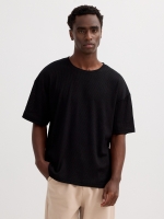 Camiseta de punto lisa con manga corta y cuello redondo. Acabado limpio y minimalista, con caída recta y ancho de 54 cm.