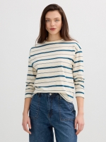 Camiseta de manga larga con estampado de rayas. Confeccionada en tejido de algodón. Diseño de cuello redondo y corte cuadrado, ideal para combinar con tus jeans favoritos.