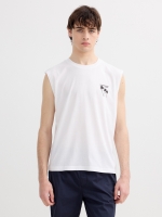 Camiseta sin mangas con estampado tropical y cuello redondo, confeccionada en tejido single jersey.Ancho de 55 cm, perfecta para completar tus looks de diario.