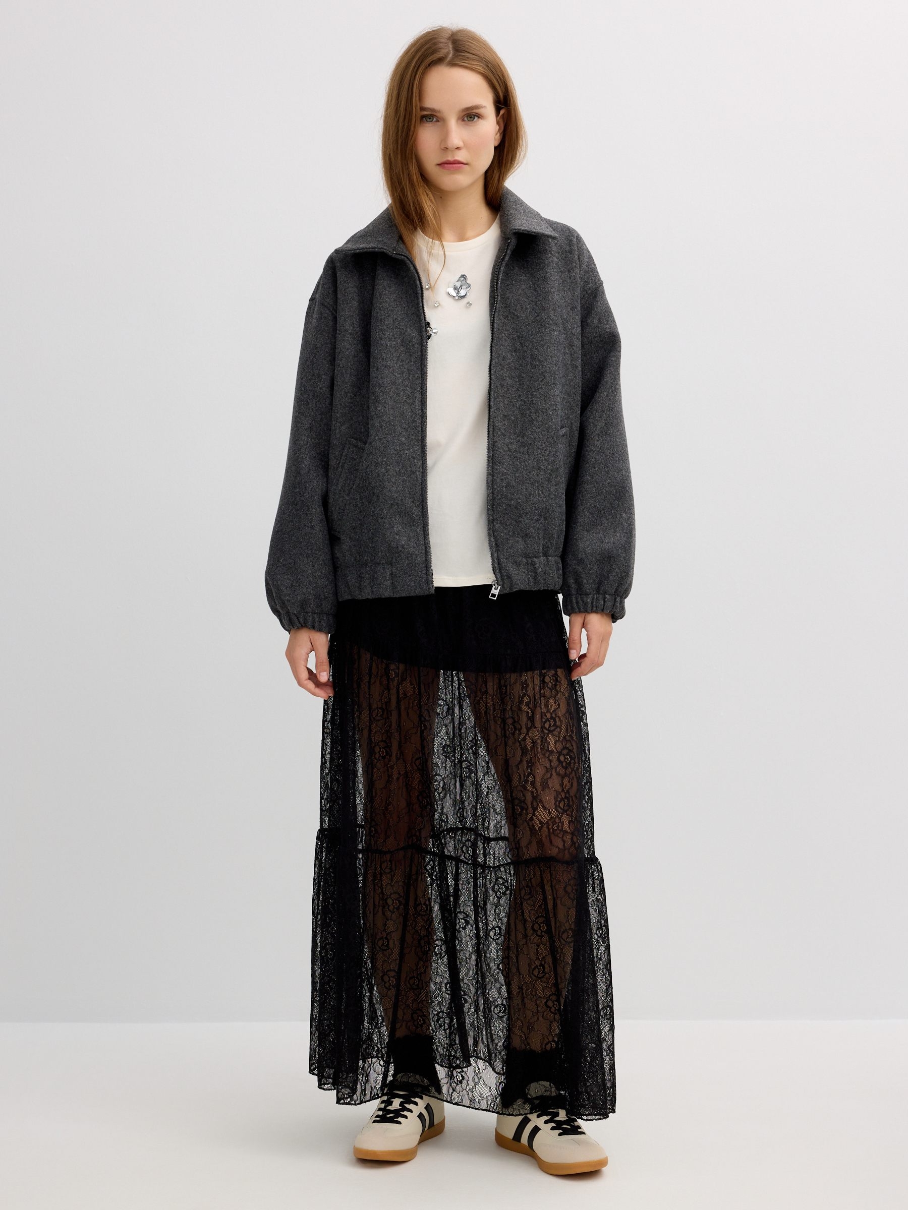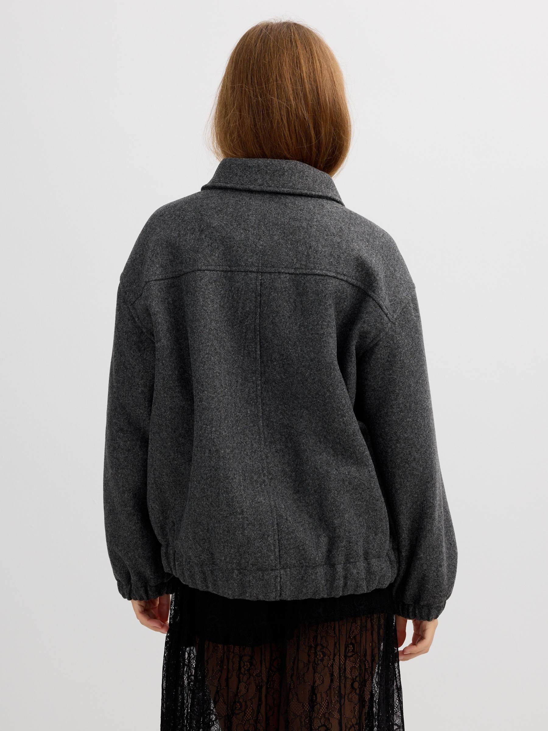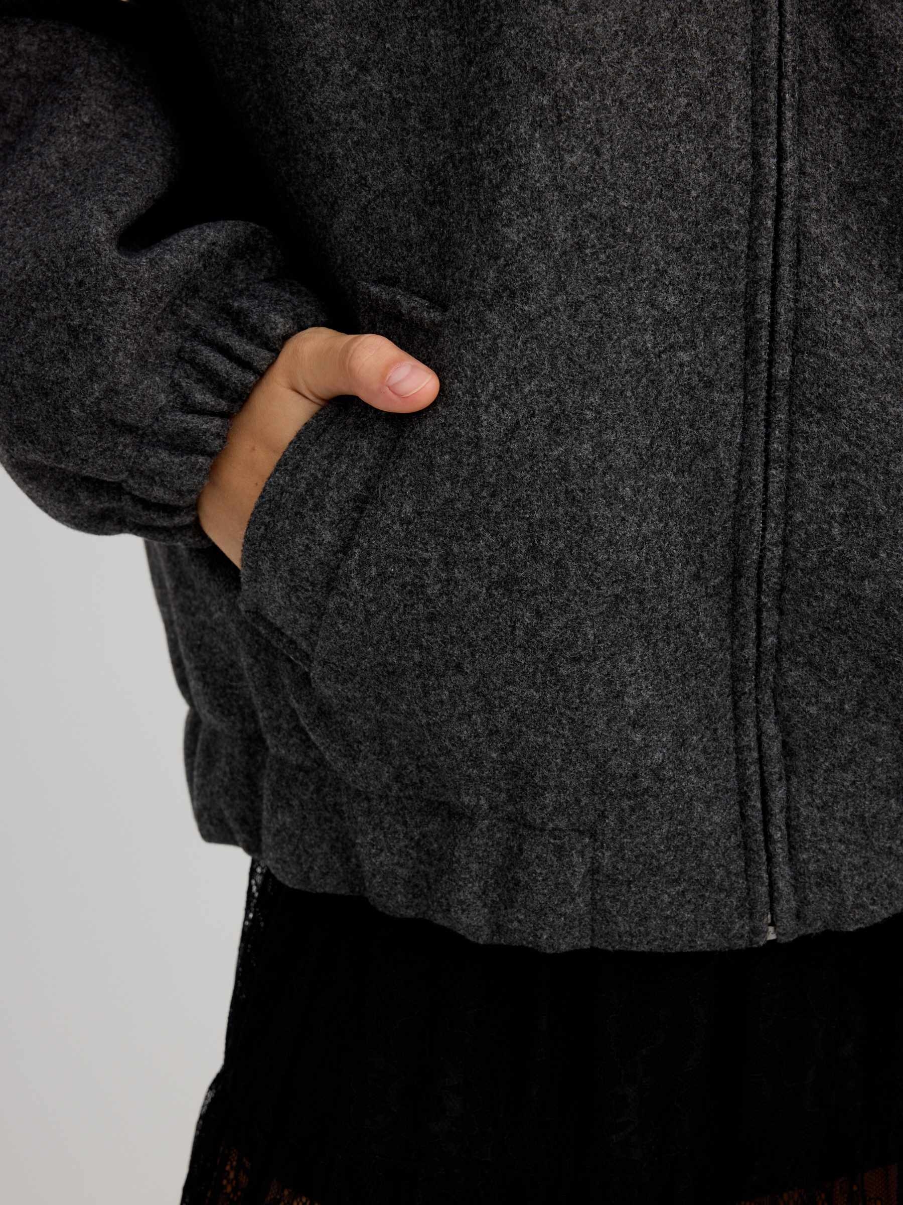 Chaqueta tipo bomber de cuello solapa y manga larga acabada en puño. Bolsillos delanteros. Bajo acabado en elástico. Cierre frontal con cremallera metálica.