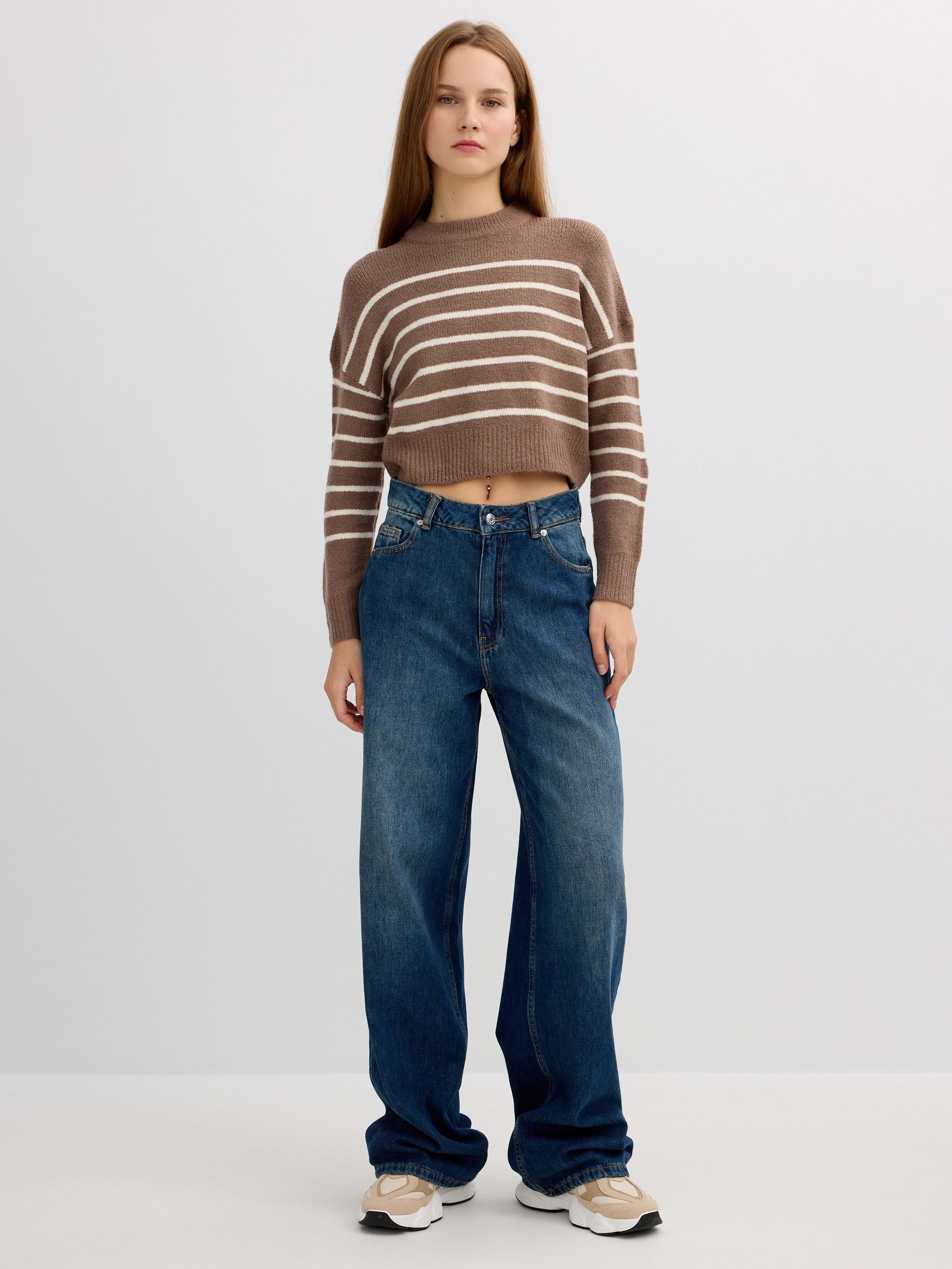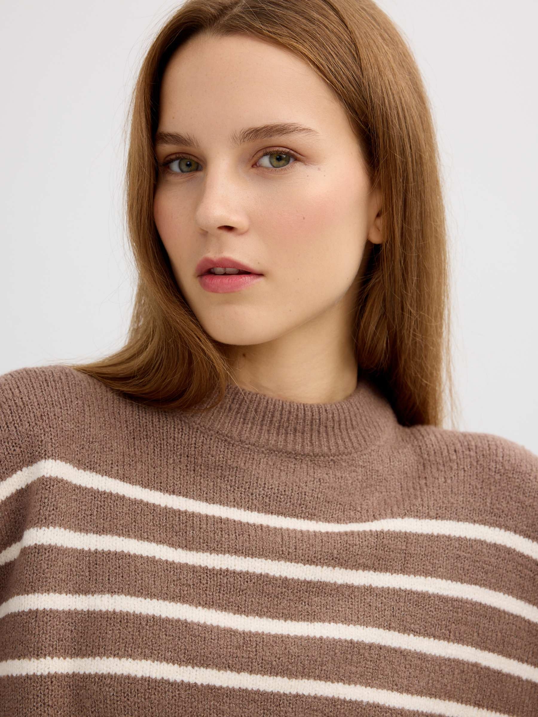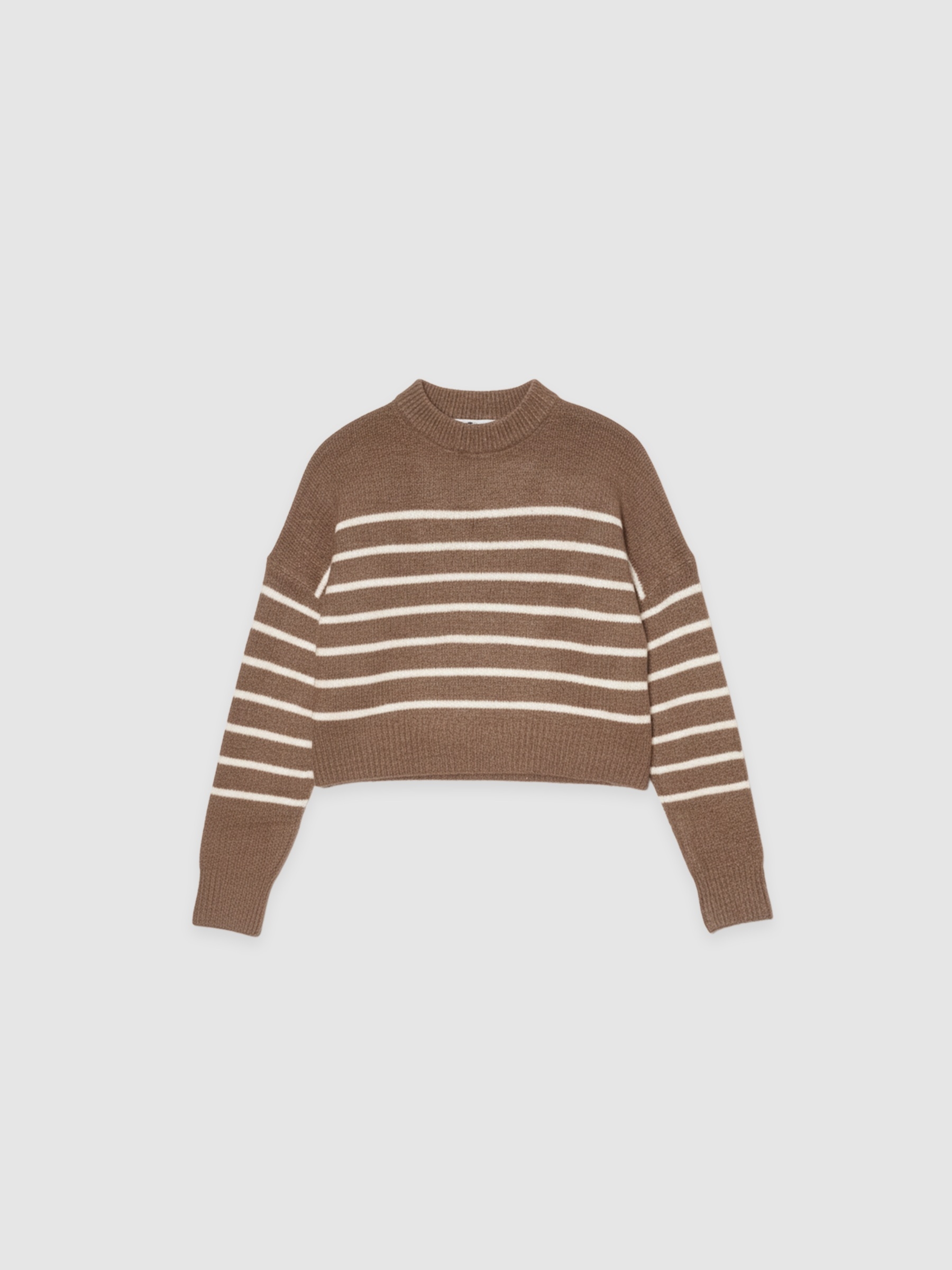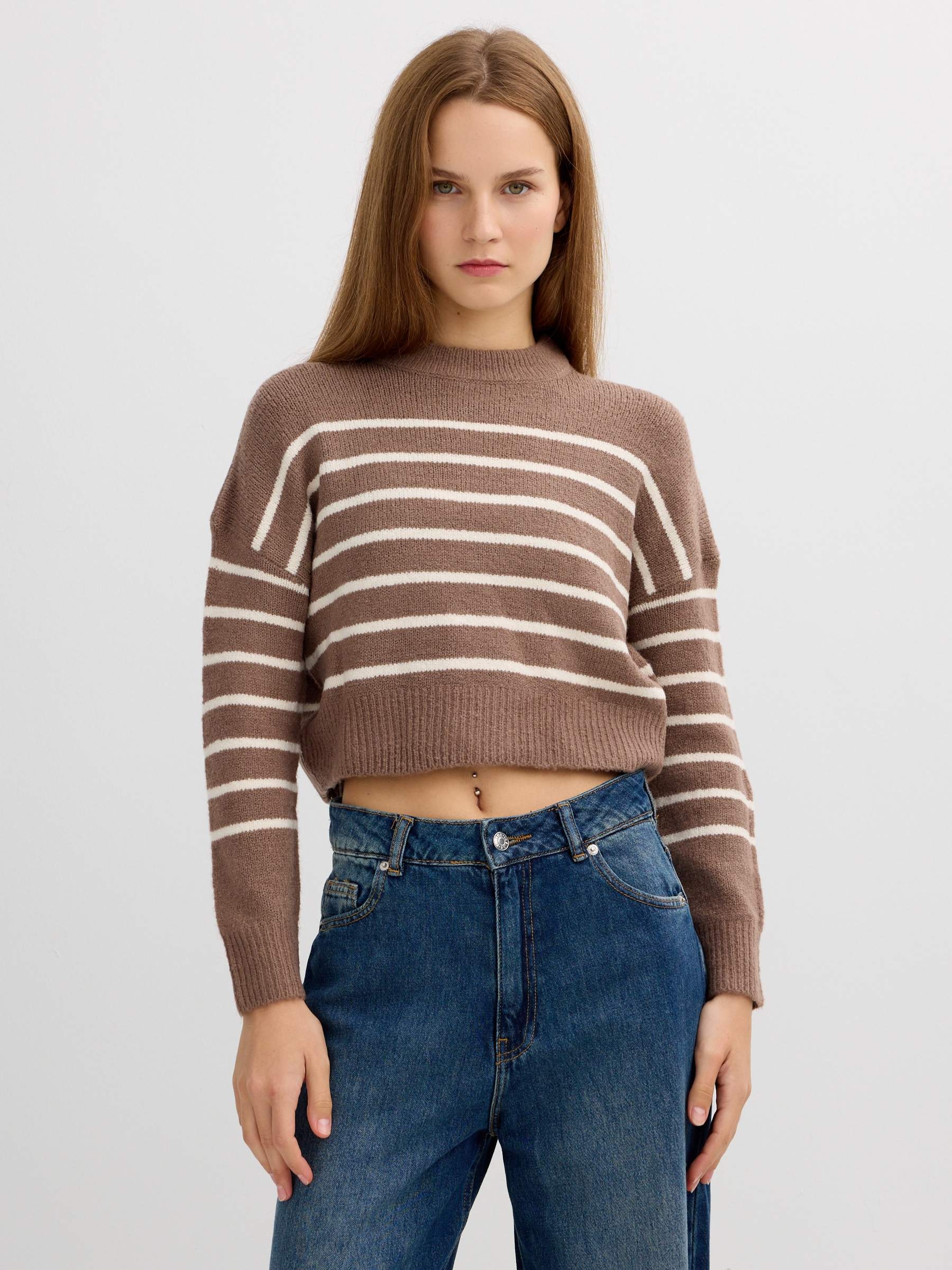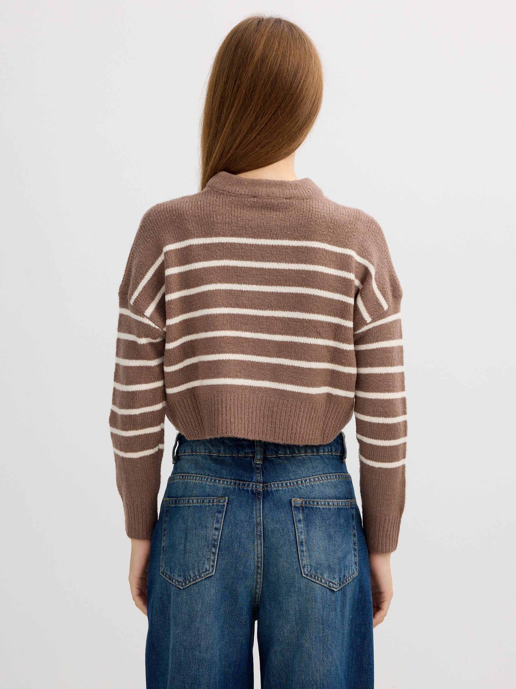 Jersey corto confeccionado en tejido tricotosa con diseño de rayas horizontales.