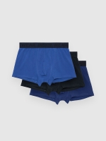 Pack de 3 calzoncillos tipo bóxer confeccionados con algodón y elastano. Diseño estampado liso y cintura elástica negra con texto.
