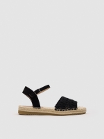 Siente la frescura del verano con estas sandalias con diseño de crochet calado. Suela plana de yute trenzado con cerco de costuras vistas con base de goma. Cierre de pulsera ajustable en el tobillo. Su diseño abierto las hace perfectas para días soleados.