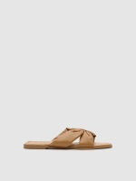 Sandalia plana con pala acolchada en efecto piel y tejido lona, acabado con suela de goma.