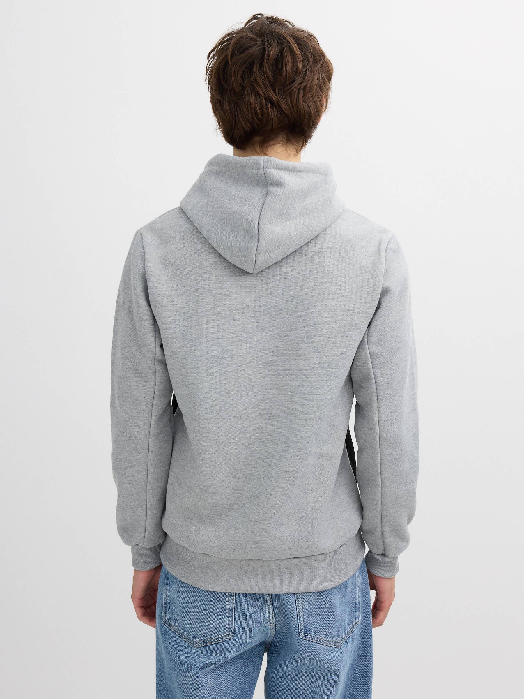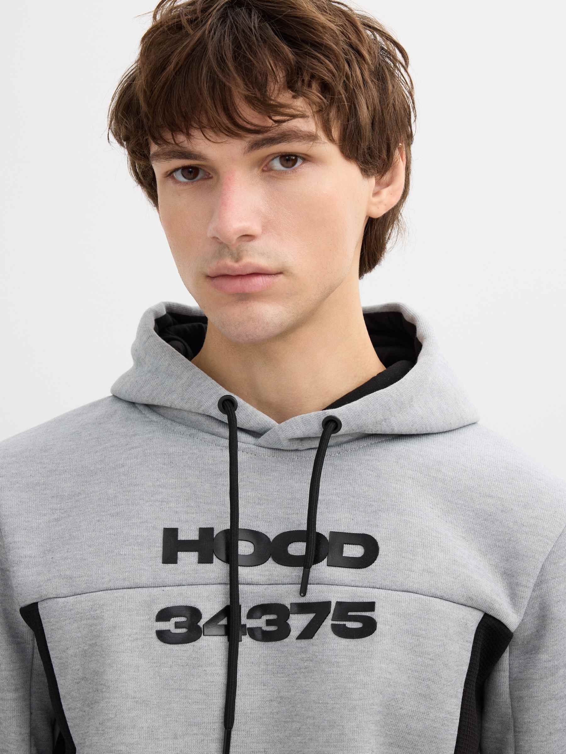 Sudadera cerrada de manga larga con capucha ajustable mediante cordones. Tejido de felpa y estilo deportivo. Con dos bolsillos delanteros. Puños y cintura en punto elástico.