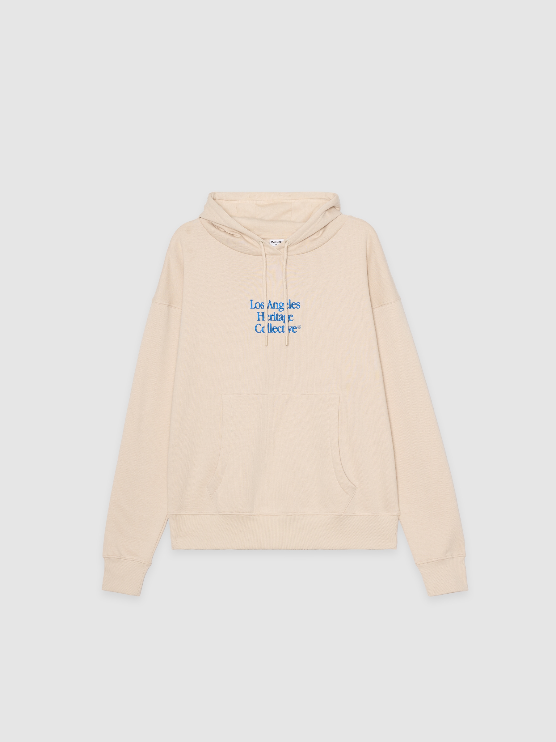 Sudadera de cuello redondo con capucha y manga larga. Bolsillo frontal tipo canguro. Corte oversize y acabados en rib.