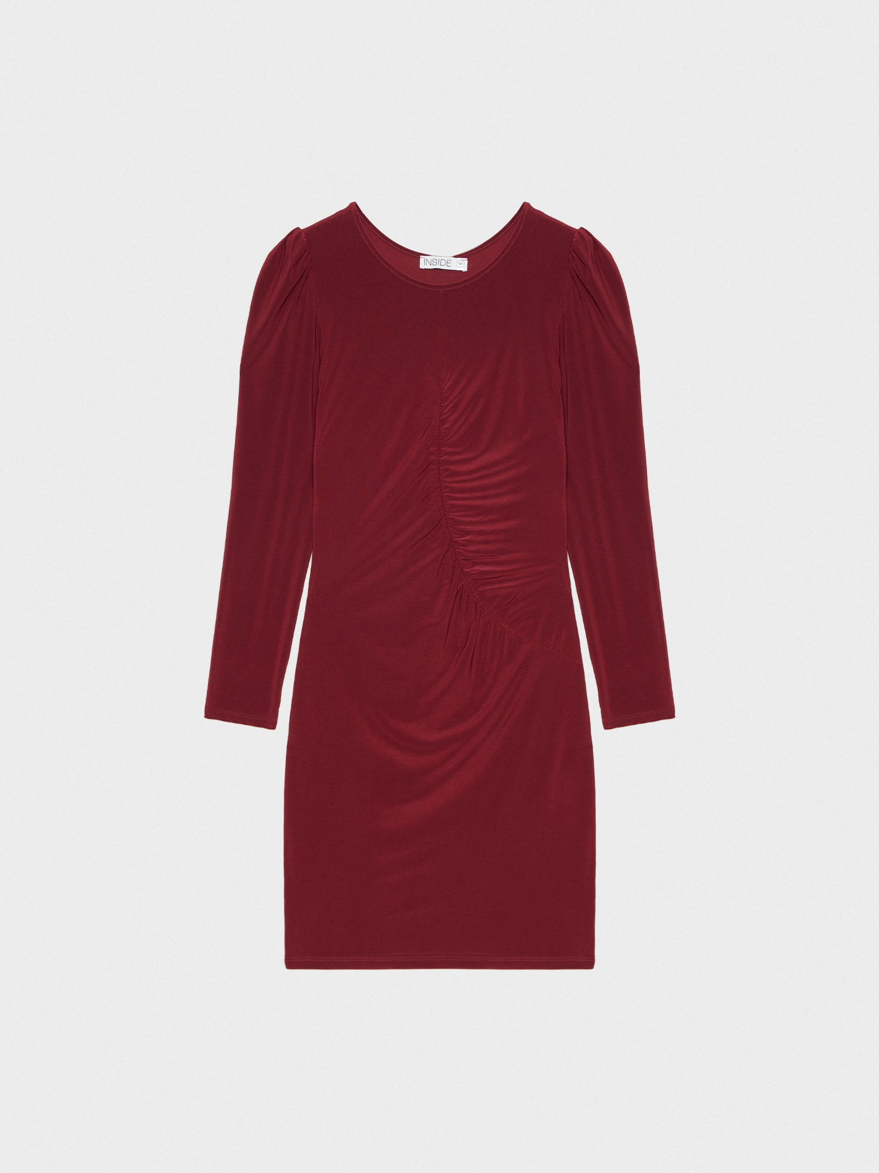 Vestido corto de manga larga con cuello redondo. Tejido de punto liso. Ajustado drapeado. Perfecto para tu momento más casual.