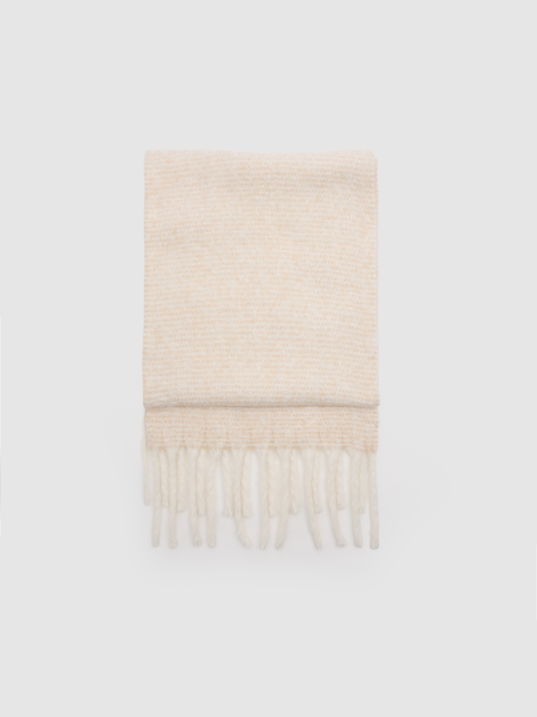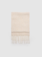 Cachecol de estampado liso e acabamentos com franjas a condizer.