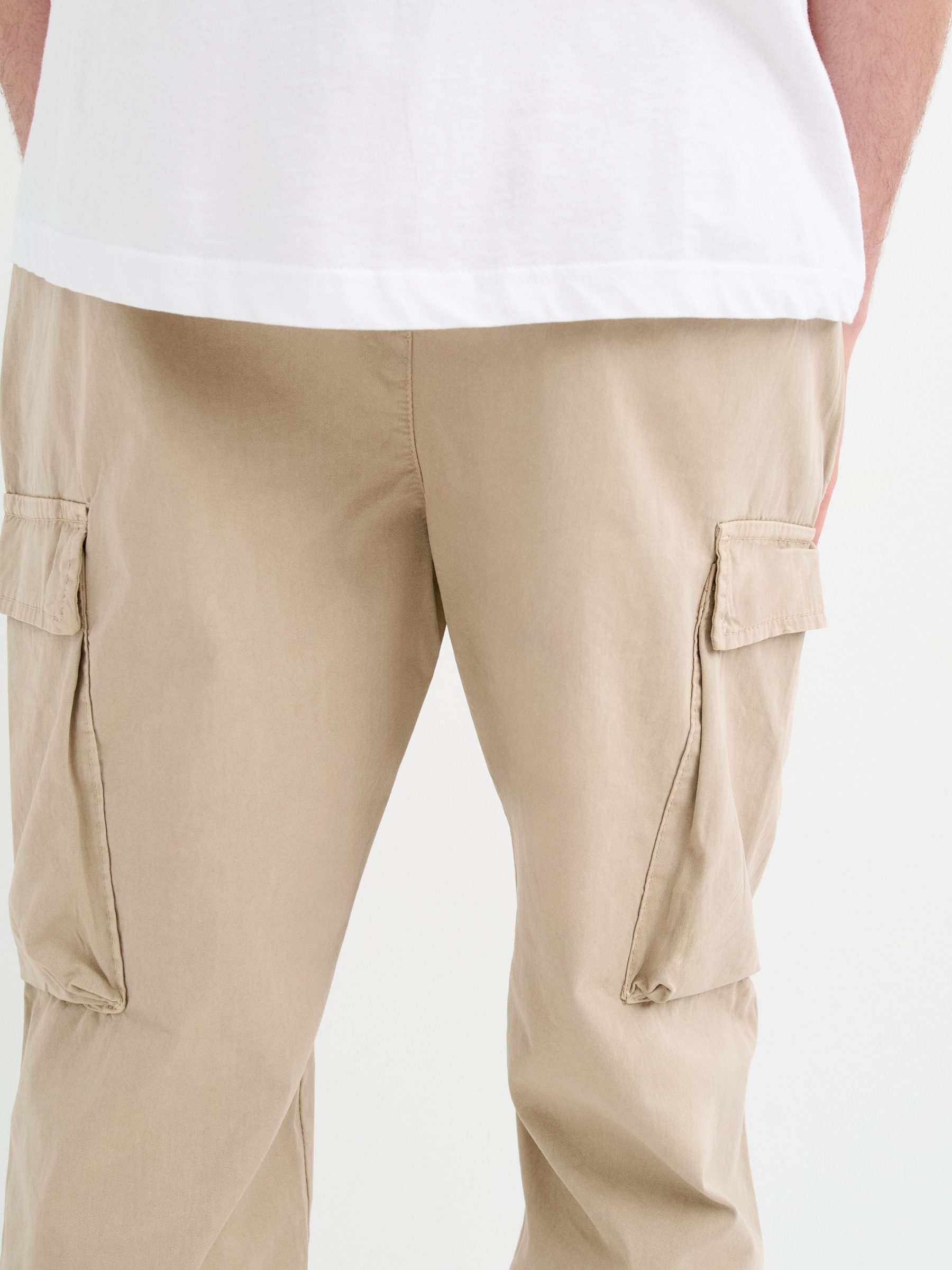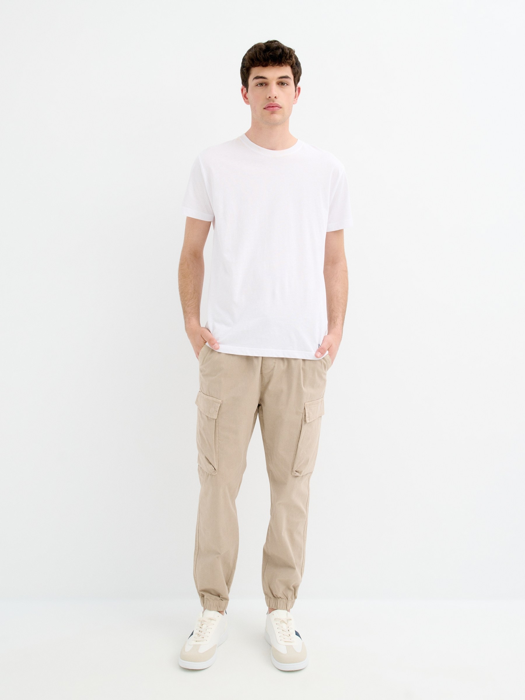 Calça jogger cargo confeccionada em tecido sarja com uma pequena porcentagem de elastano que proporciona elasticidade e conforto. Apresenta um design multibolsos com fechamento elástico e cordão na cintura, além de barras ajustadas que se adaptam ao tornozelo. Uma peça funcional e versátil para o dia a dia.