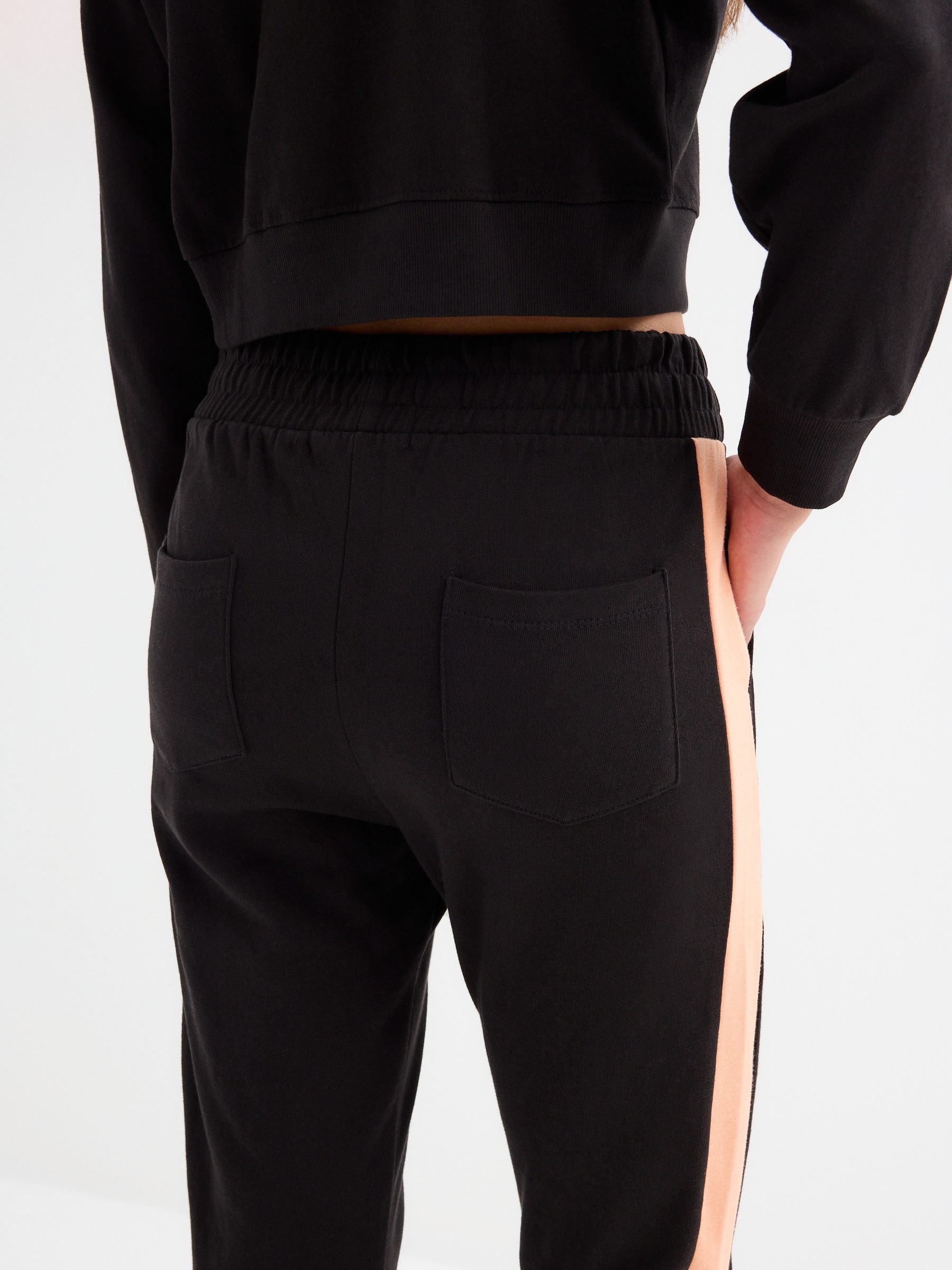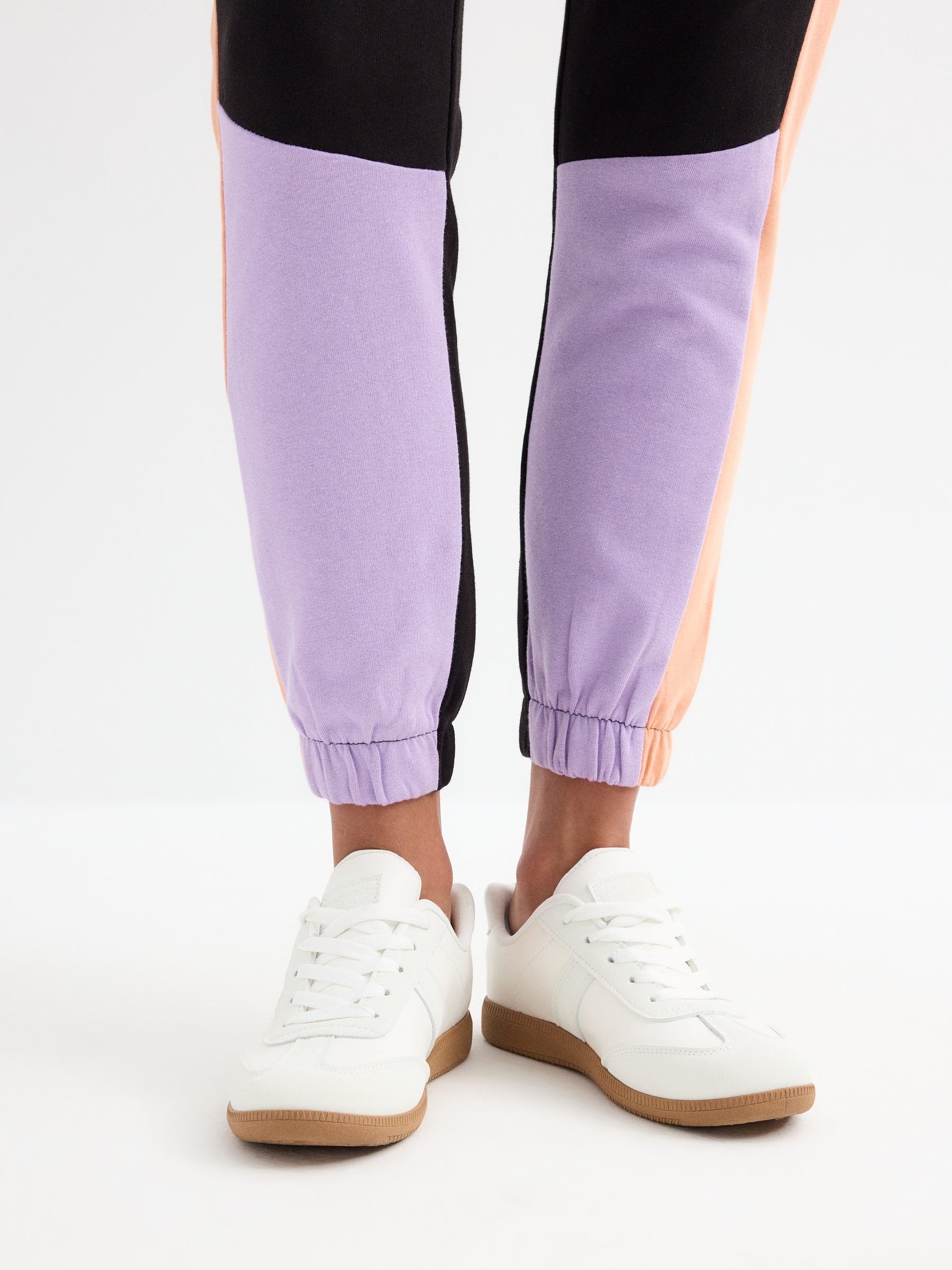 A aparência total tem sido bem sucedida por muitas razões. A primeira é como são fáceis de combinar. Em segundo lugar, alcançam um efeito TOP, pelo qual todos se apaixonaram. Descubra isto e mais vantagens experimentando-o por si mesmo com esta calça de jogger em bloco de cor combinada com a sua camisola.