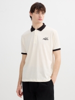 Polo de manga curta com estampado de texto no peito, confeccionado em tecido single jersey. Colarinho clássico em contraste, fecho frontal com botões e acabamento com debrum nas mangas. Largura de 55 cm.
