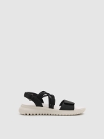 Sandália com tiras cruzadas e fecho de velcro, confeccionada em tecido de couro sintético. Sola de borracha. Ideal para completar seus looks de verão.